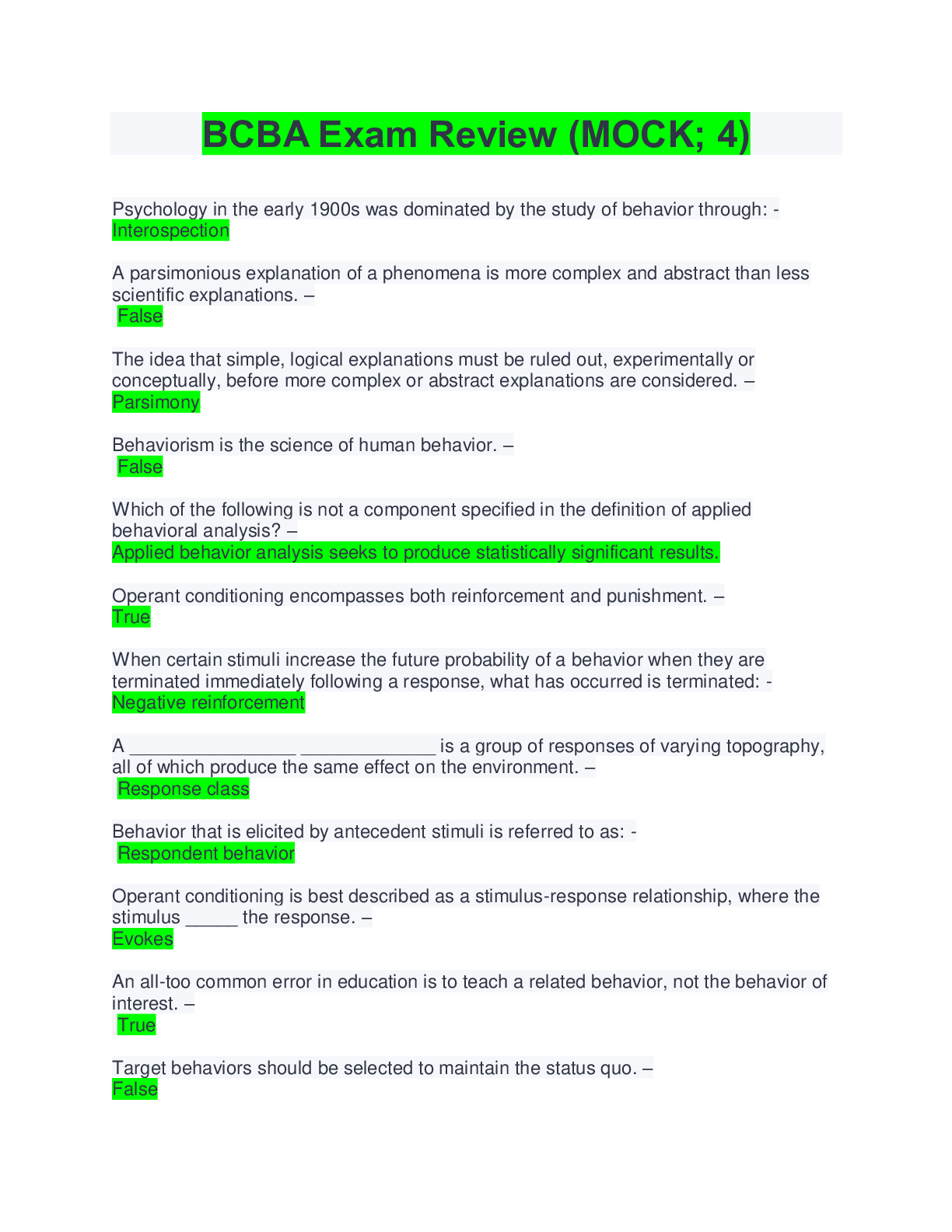 SCIENCE 101 > EXAM > BCBA Exam Review (MOCK; 4) Questions And Answers 2021/2022( Complete best Solution Rated A) (All)