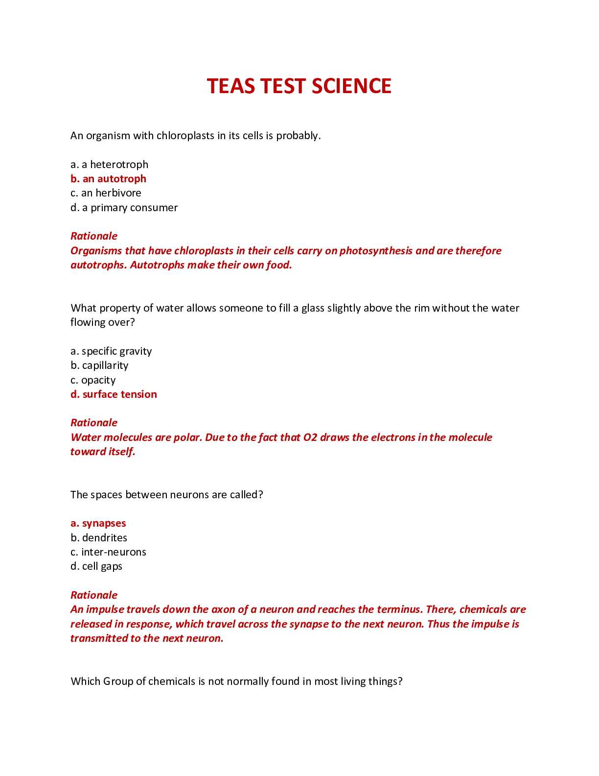 SCIENCE 101 > EXAM > TEAS TEST SCIENCE ATI - QUESTIONS, ANSWERS & RATIONALE (All)