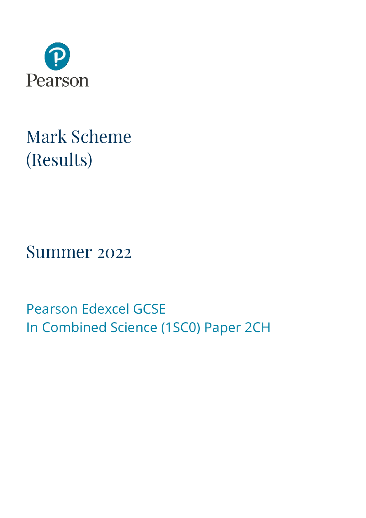 Combined Science: Synergy > MARK SCHEMES > Mark Scheme (Results) Summer 2022 Pearson Edexcel GCSE In Combined Science (1SC0) Paper 2CH Edexcel and BTEC Qualifications (All)