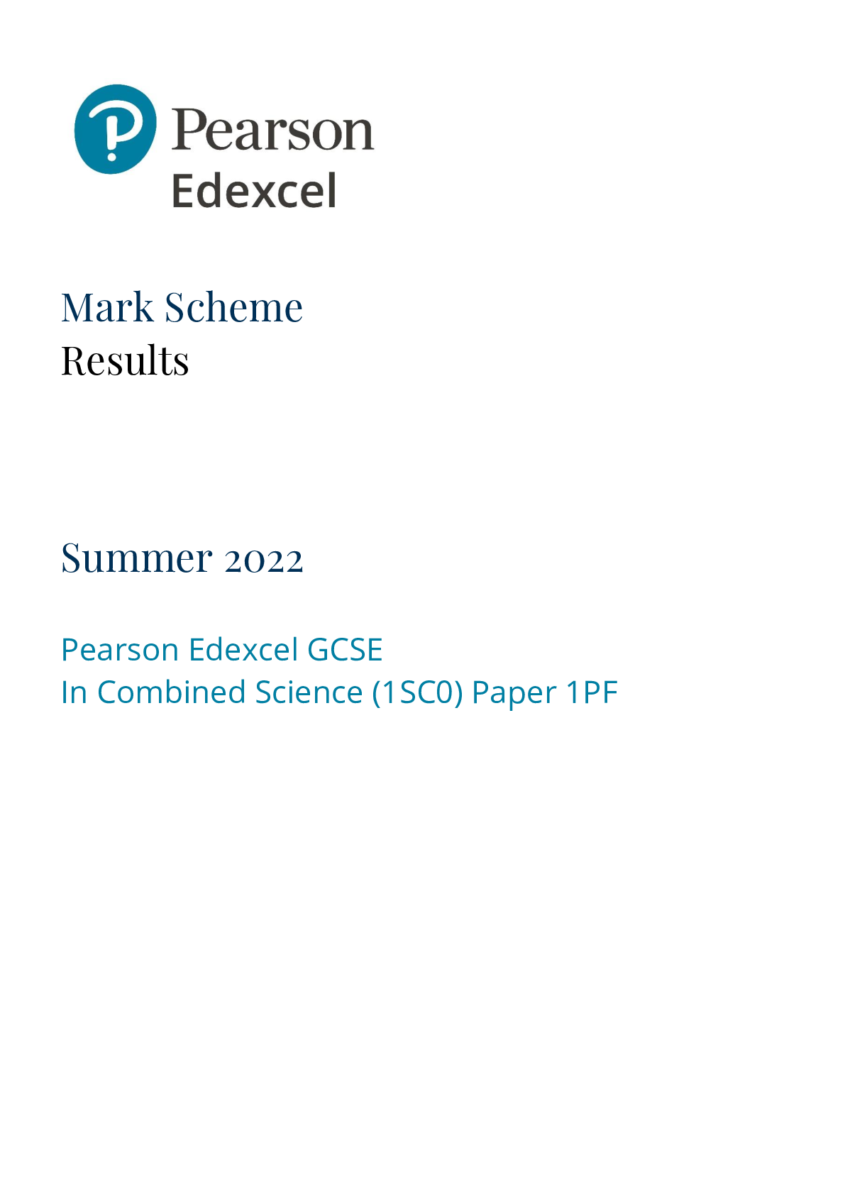 Combined Science: Synergy > MARK SCHEMES > Mark Scheme Results Summer 2022 Pearson Edexcel GCSE In Combined Science (1SC0) Paper 1PF Edexcel and BTEC Qualifications (All)