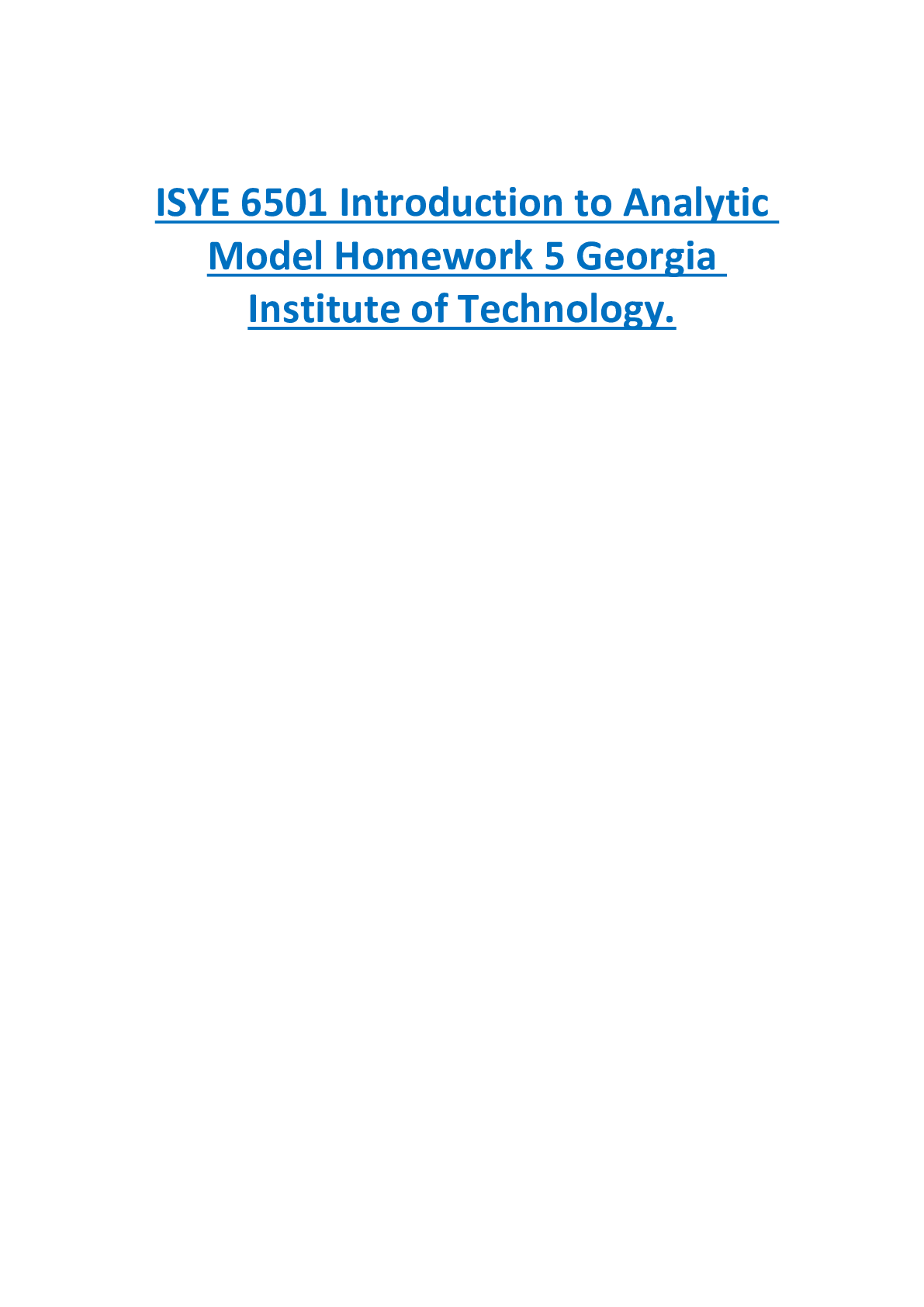 Design and Technology > EXAM > ISYE 6501 Introduction to Analytic Model Homework 5 Georgia Institute of Technology. (All)