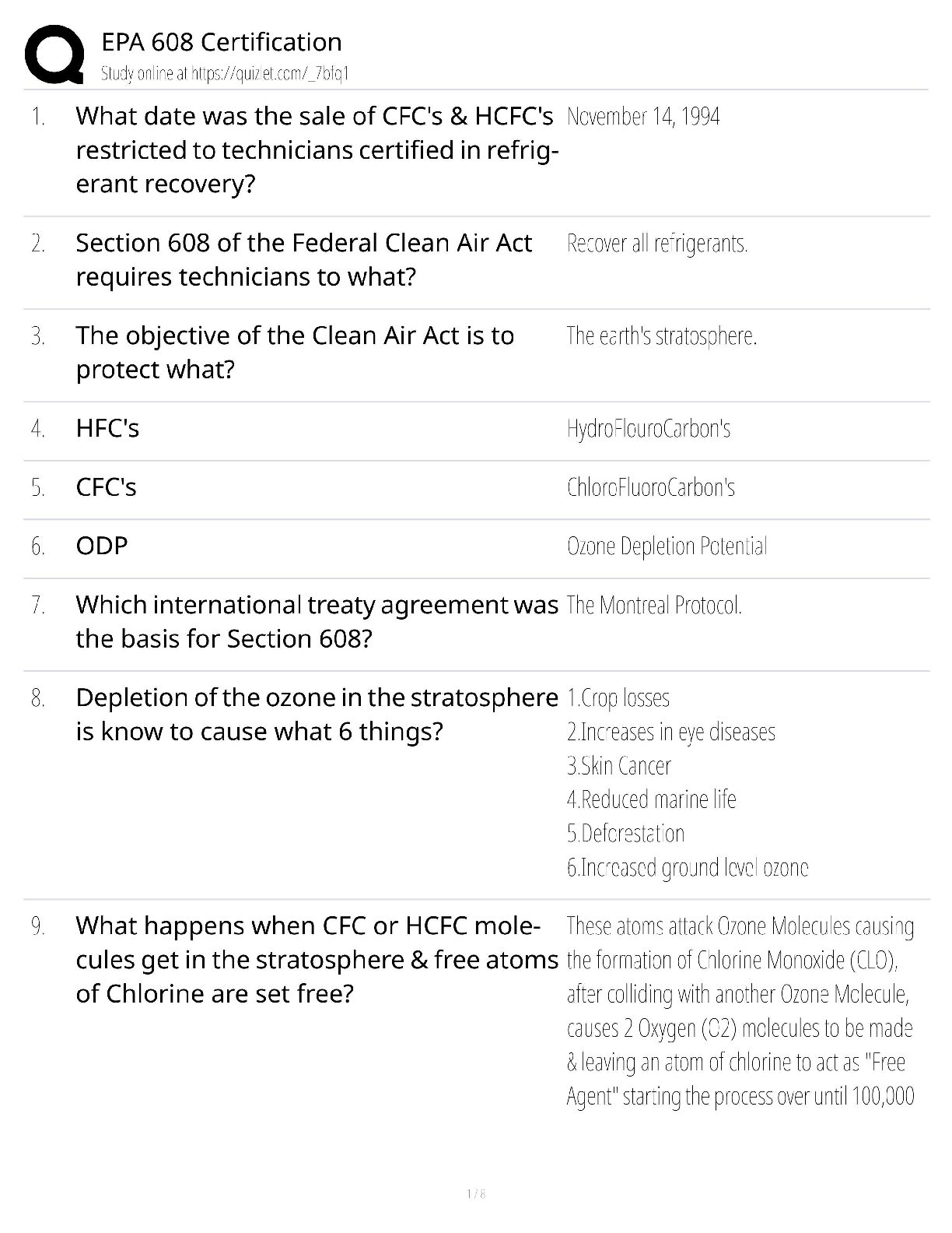 Design and Technology > QUESTIONS & ANSWERS > EPA 608 Certification Class Notes, Study Guide & Test Bank (Complete Technician Exam Prep) (All)