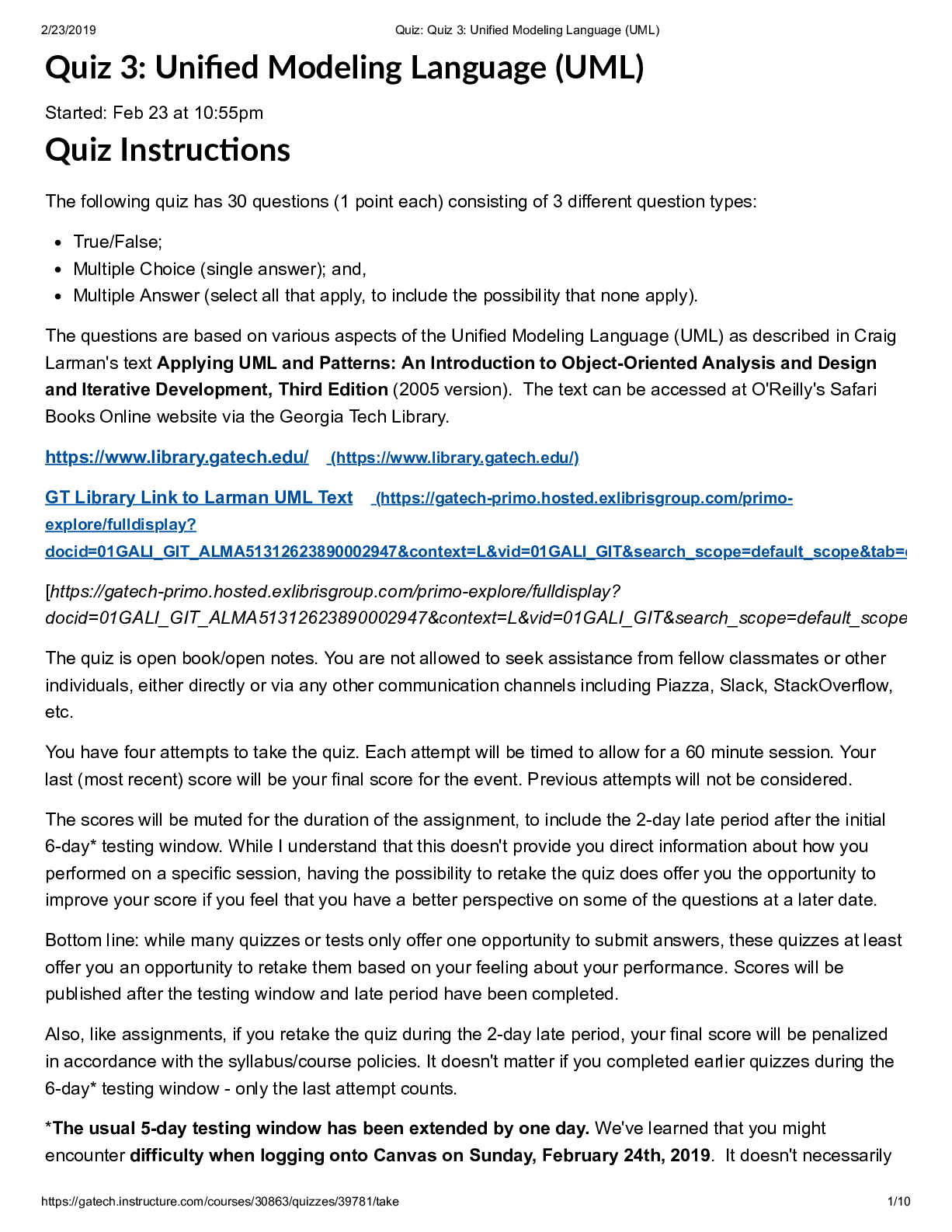 Design and Technology > QUESTIONS & ANSWERS > Quiz 3: Unified Modeling Language (UML) (All)