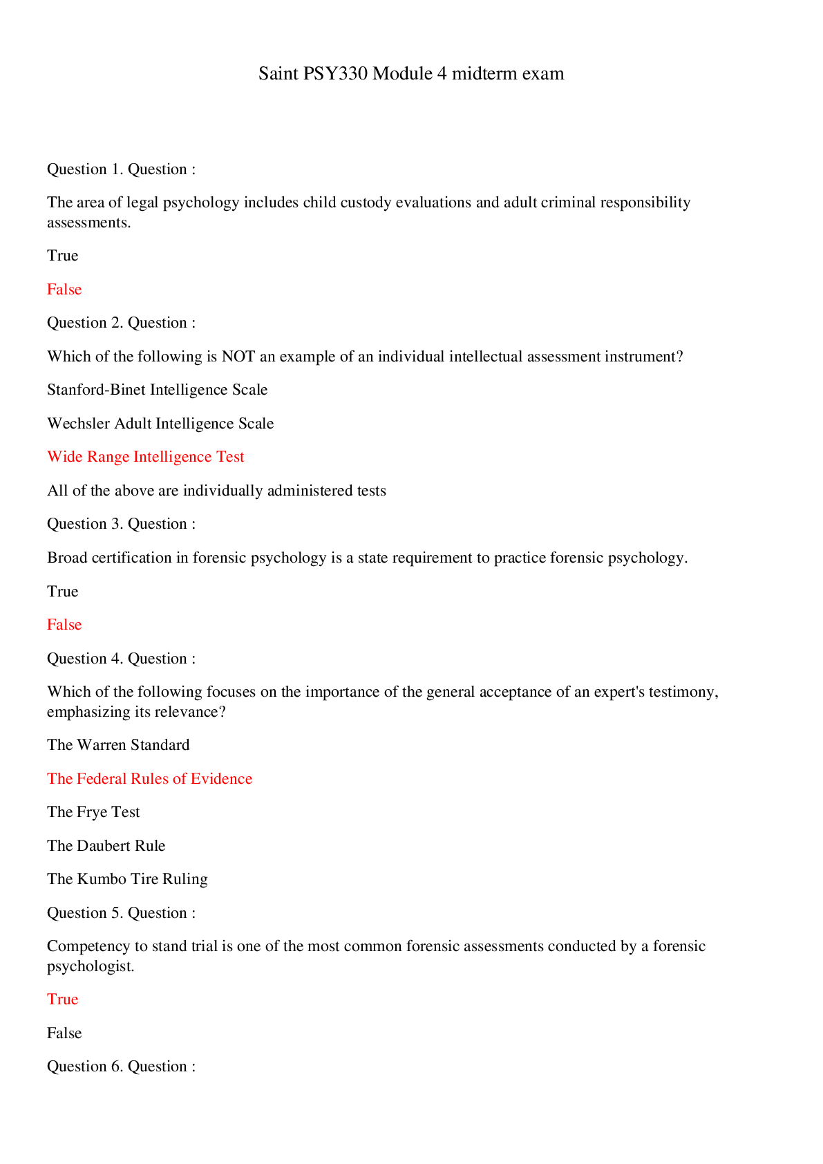 Education > EXAM > Saint PSY330 Module 4 midterm exam (70 questions) (All)