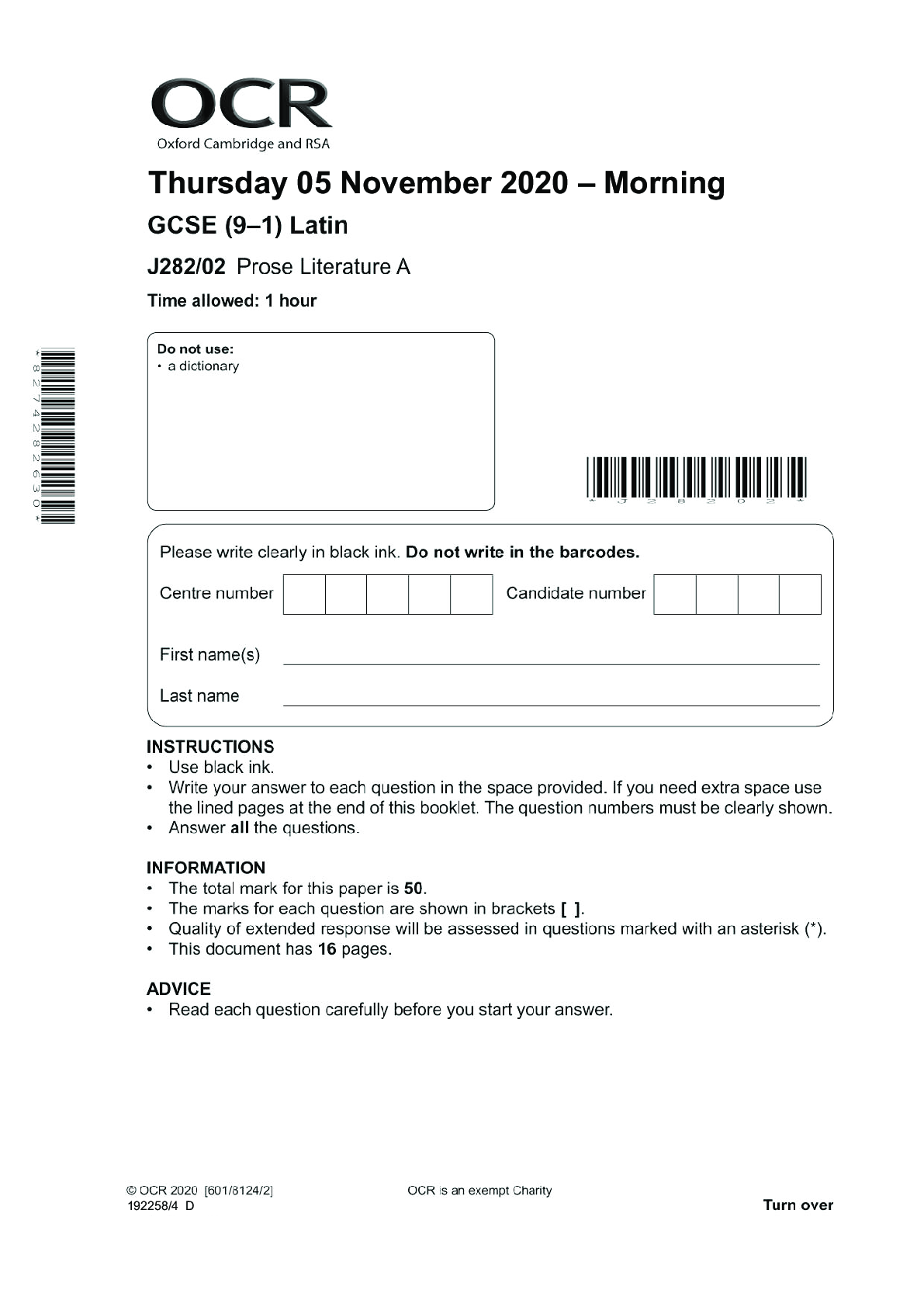 Latin > GCSE QUESTION PAPER > GCSE (9–1) Latin_J282/02 Question Paper Nov 2020 | Prose Literature A (All)