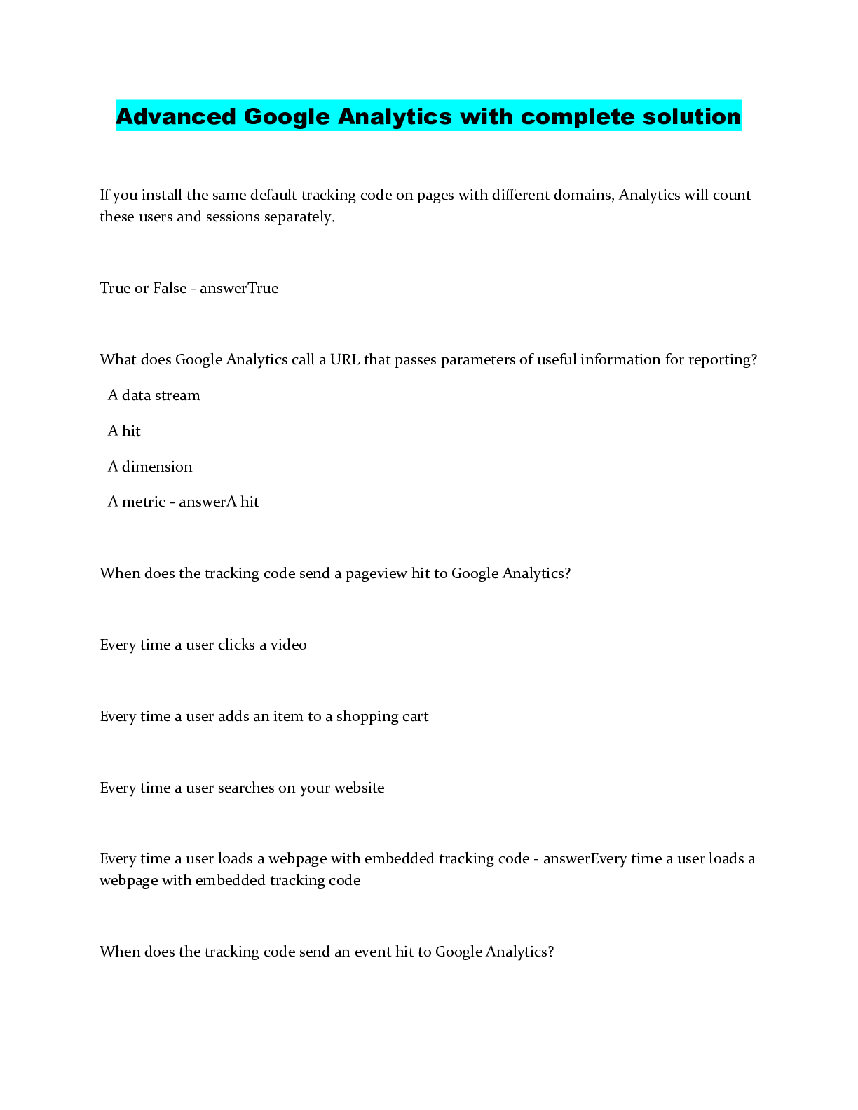 Media Studies > QUESTIONS & ANSWERS > Advanced Google Analytics with complete solution (All)
