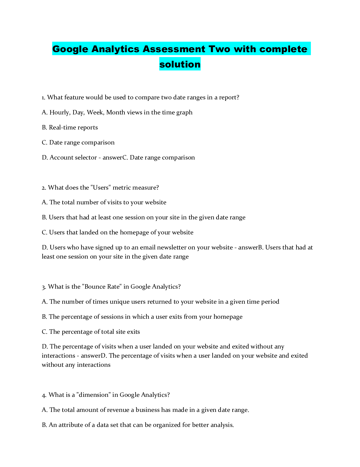 Media Studies > QUESTIONS & ANSWERS > Google Analytics Assessment Two with complete solution (All)