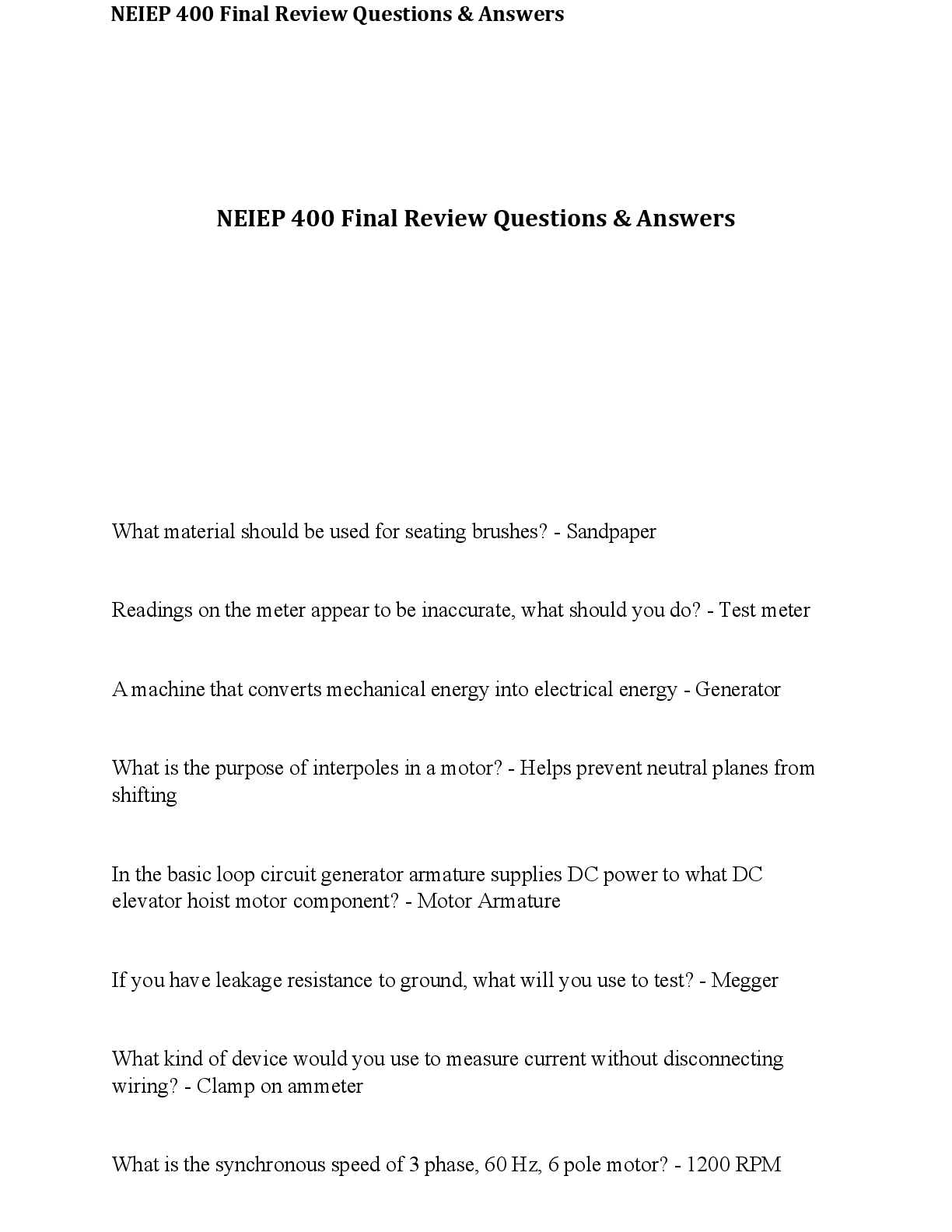 Engineering > EXAM REVIEW > NEIEP 400 Final Exam Review Questions & Answers! 100% CORRECT ANSWERS ALREADY RATED A+ (All)