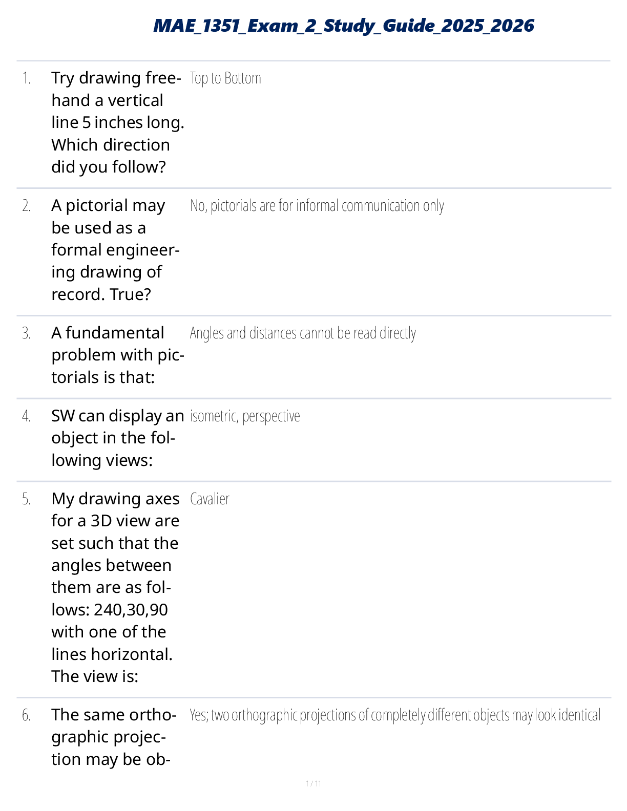 Engineering > STUDY GUIDE > MAE 1351 Exam 2 Study Guide 2025 (All)