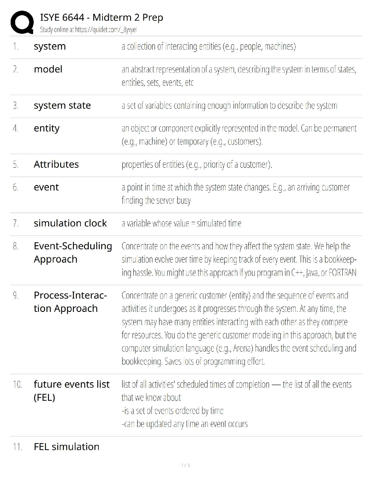 Engineering > EXAM REVIEW > ISYE 6644 - Midterm 2 Prep (All)