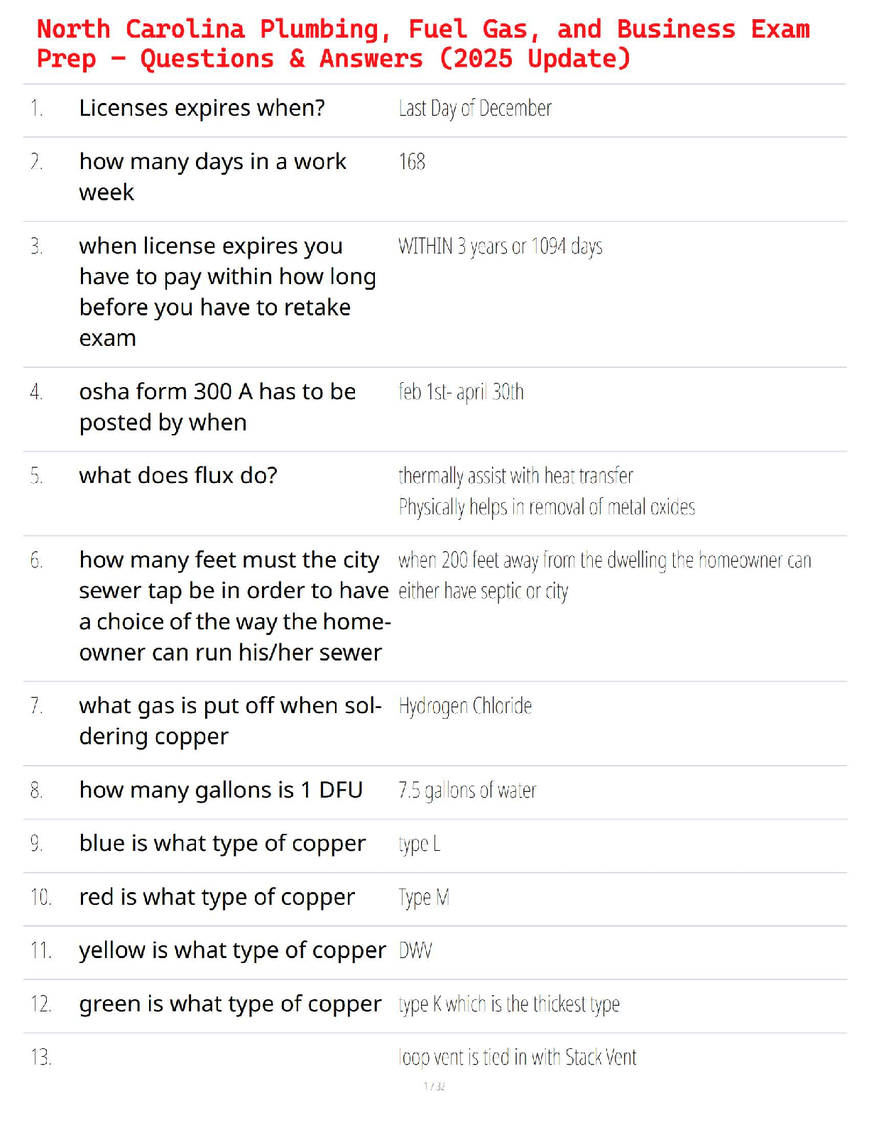 Engineering > QUESTIONS and ANSWERS > North Carolina Plumbing, Fuel Gas, & Business Exam Prep – Questions & Answers (2025 Update) (All)