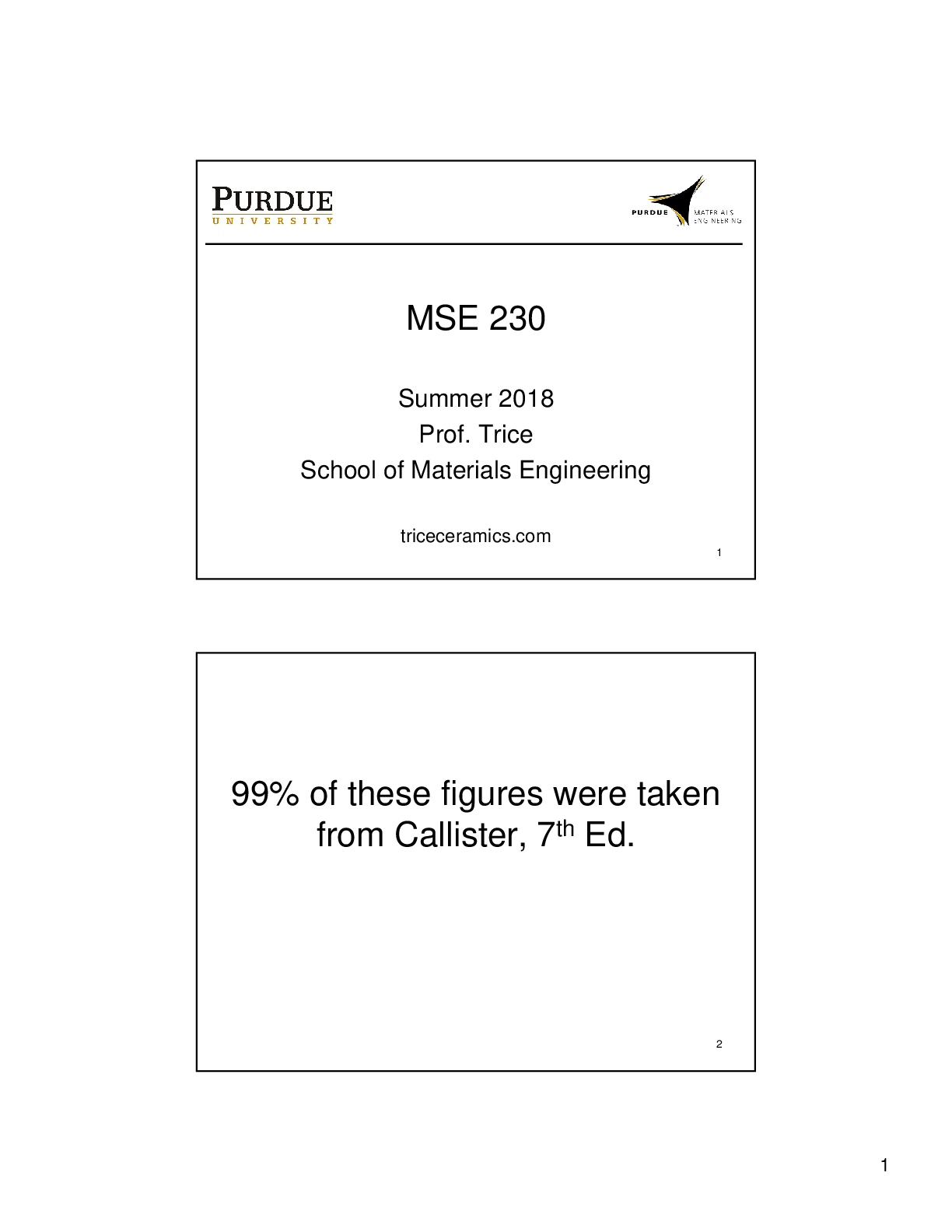 Engineering > Class Notes > MSE 230_All_Lectures_Summer_2018_with_no_cartoons_2_slides_per_page - Purdue University | MSE230_All_Lectures_Summer_2018_with_no_cartoons_2_slides_per_page (All)