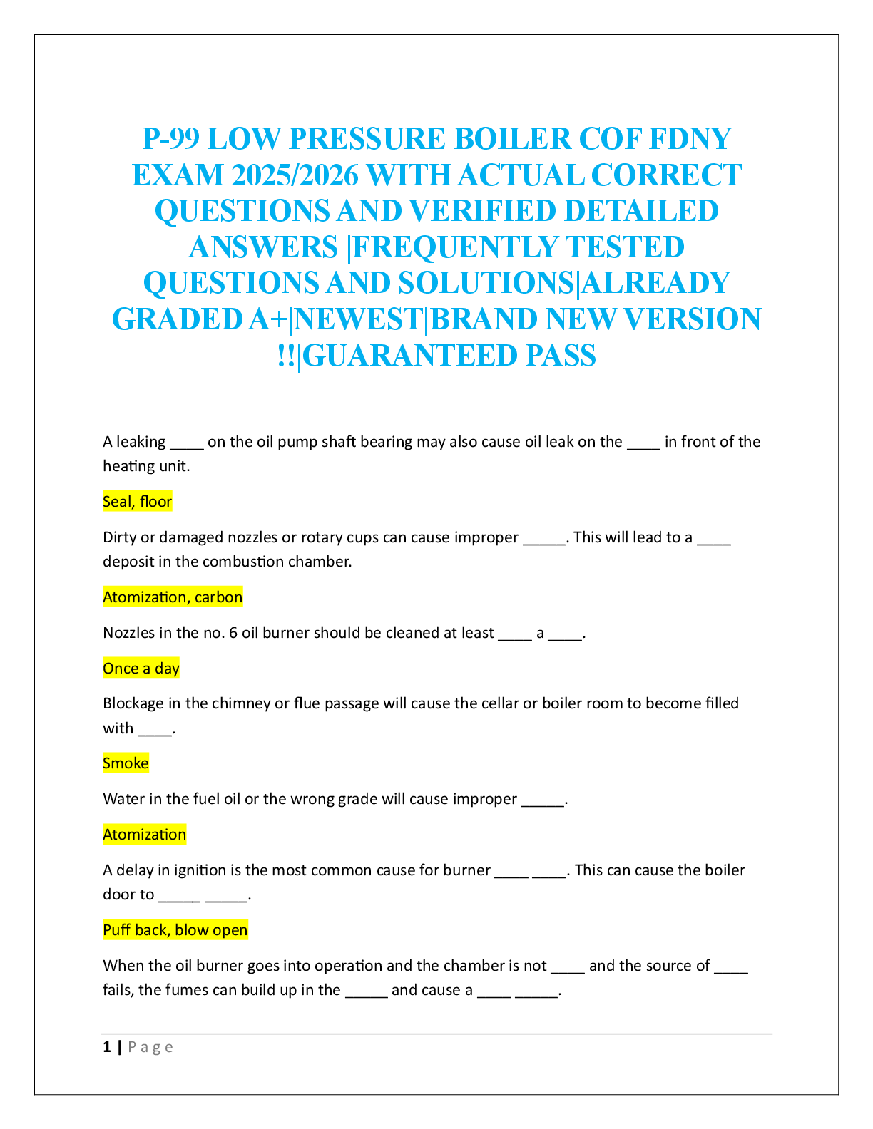 Engineering > EXAM > P-99 LOW PRESSURE BOILER COF FDNY EXAM (All)