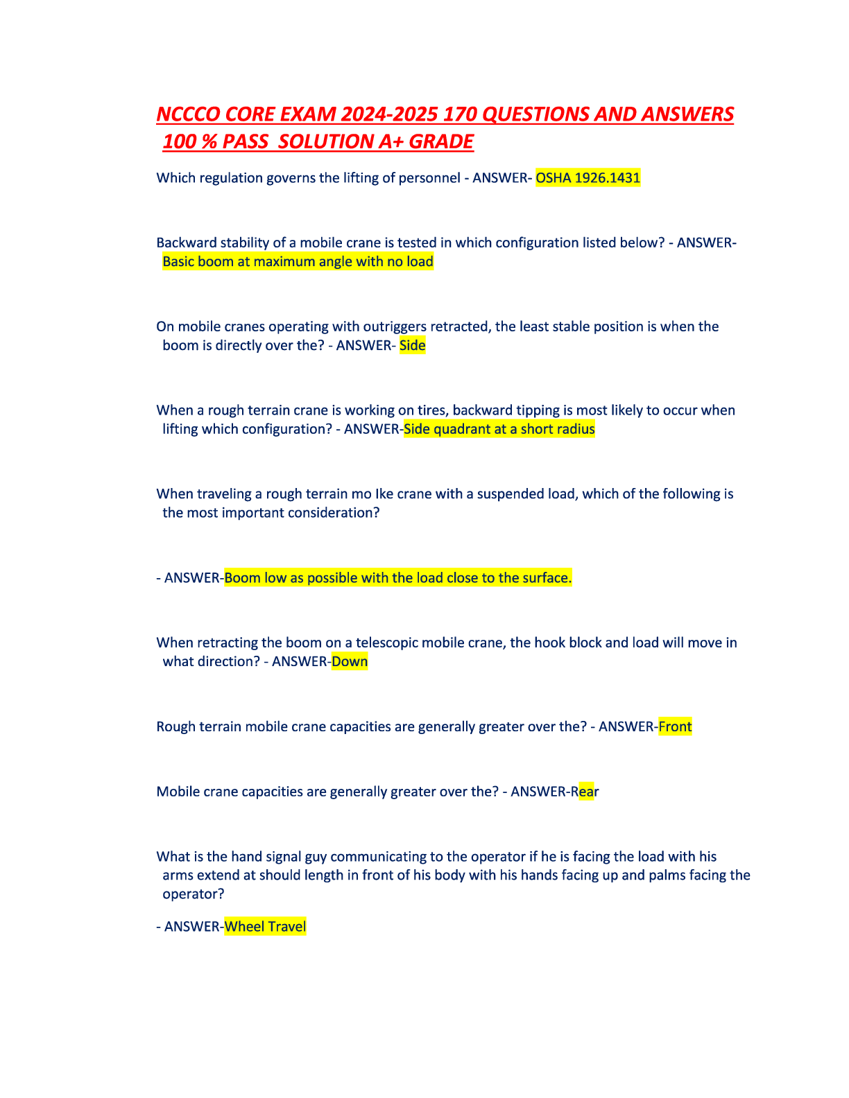 Engineering > EXAM > NCCCO CORE EXAM 2024-2025 170 QUESTIONS AND ANSWERS 100% PASS SOLUTION A+ GRADE. (All)