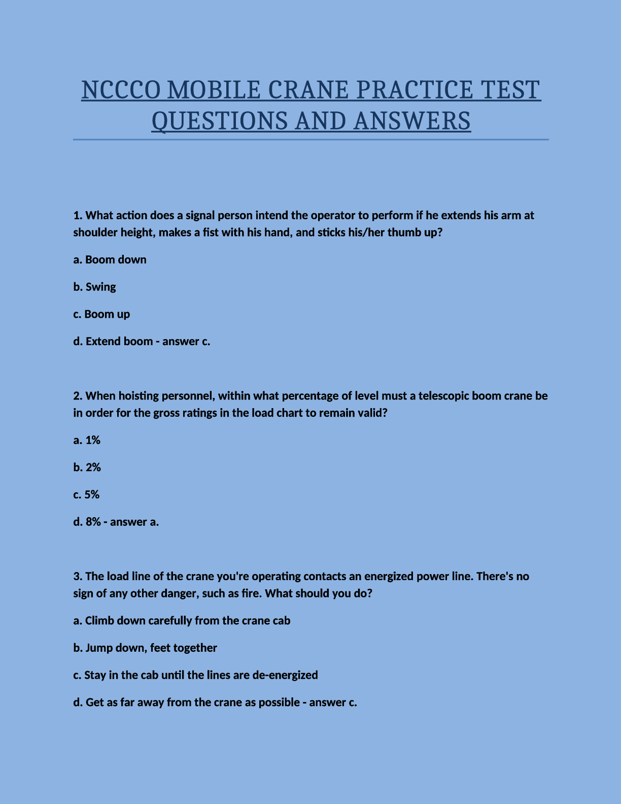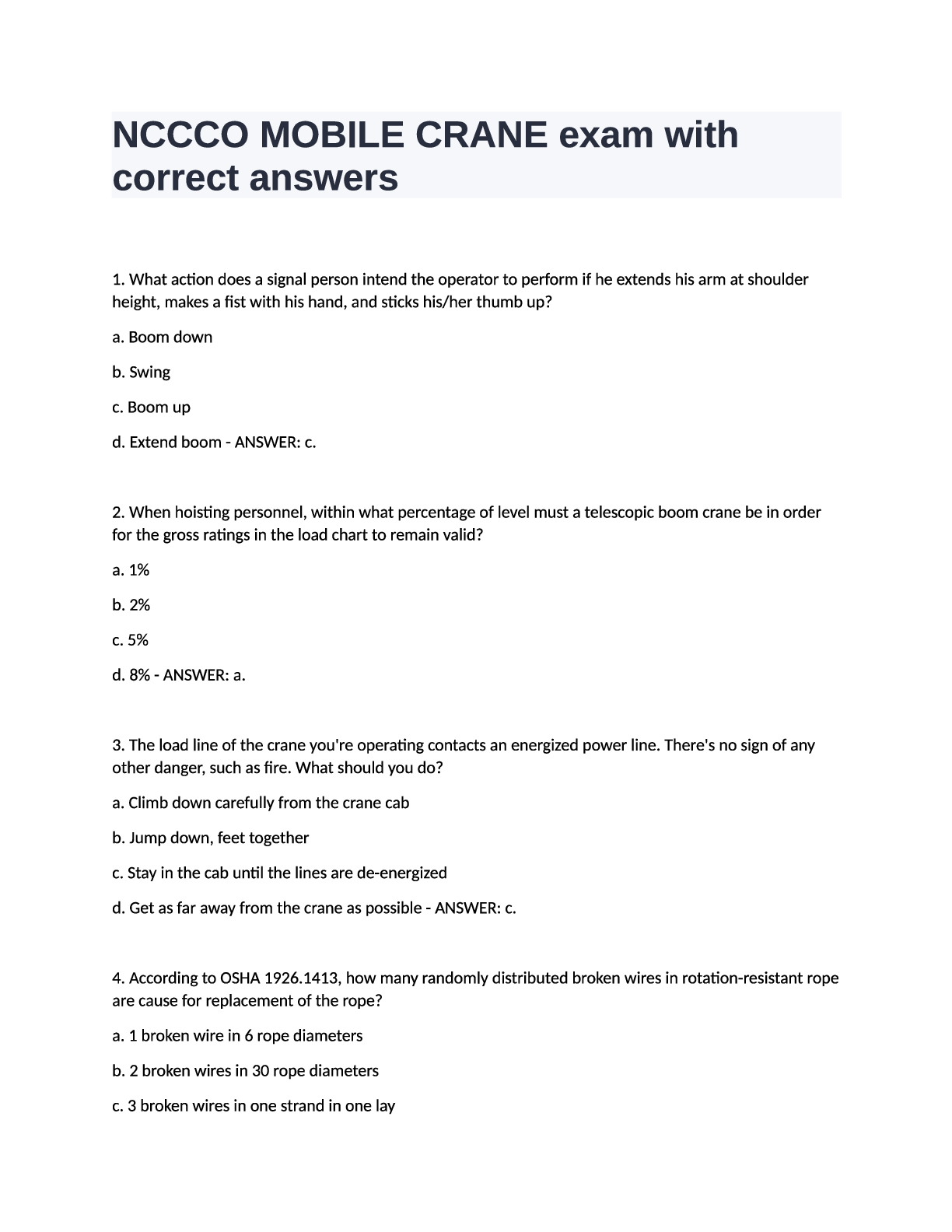 Engineering > EXAM > NCCCO Mobile Crane Practice Test Questions and Answers.. (All)