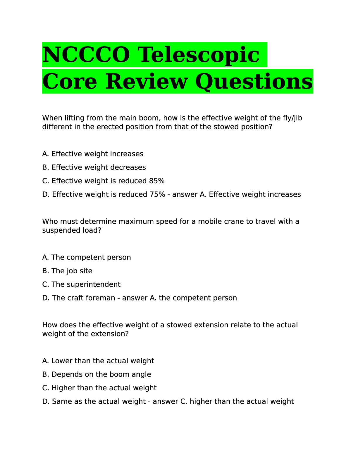 Engineering > EXAM > NCCCO Telescopic Core Review Questions.. (All)