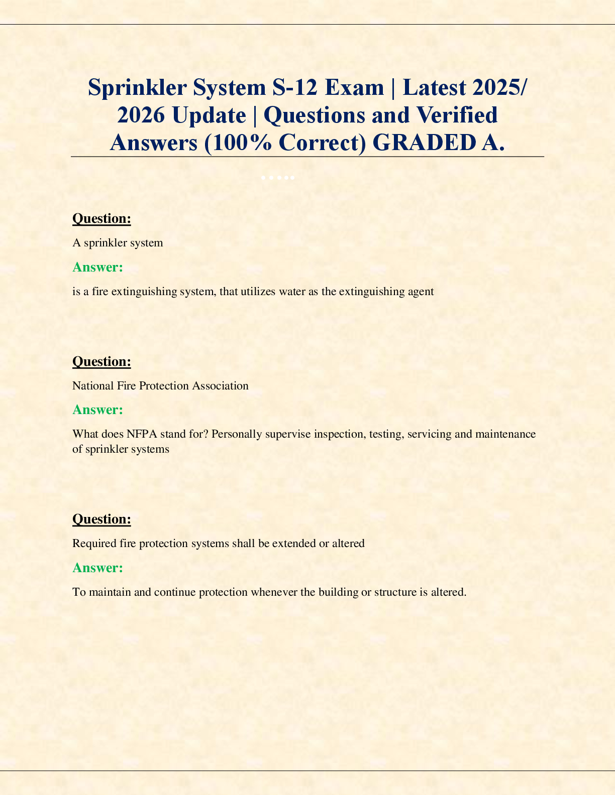 Engineering > EXAM > Sprinkler System S-12 Exam | Latest 2025/ 2026 Update | Questions and Verified Answers (100% Correct) GRADED A. (All)