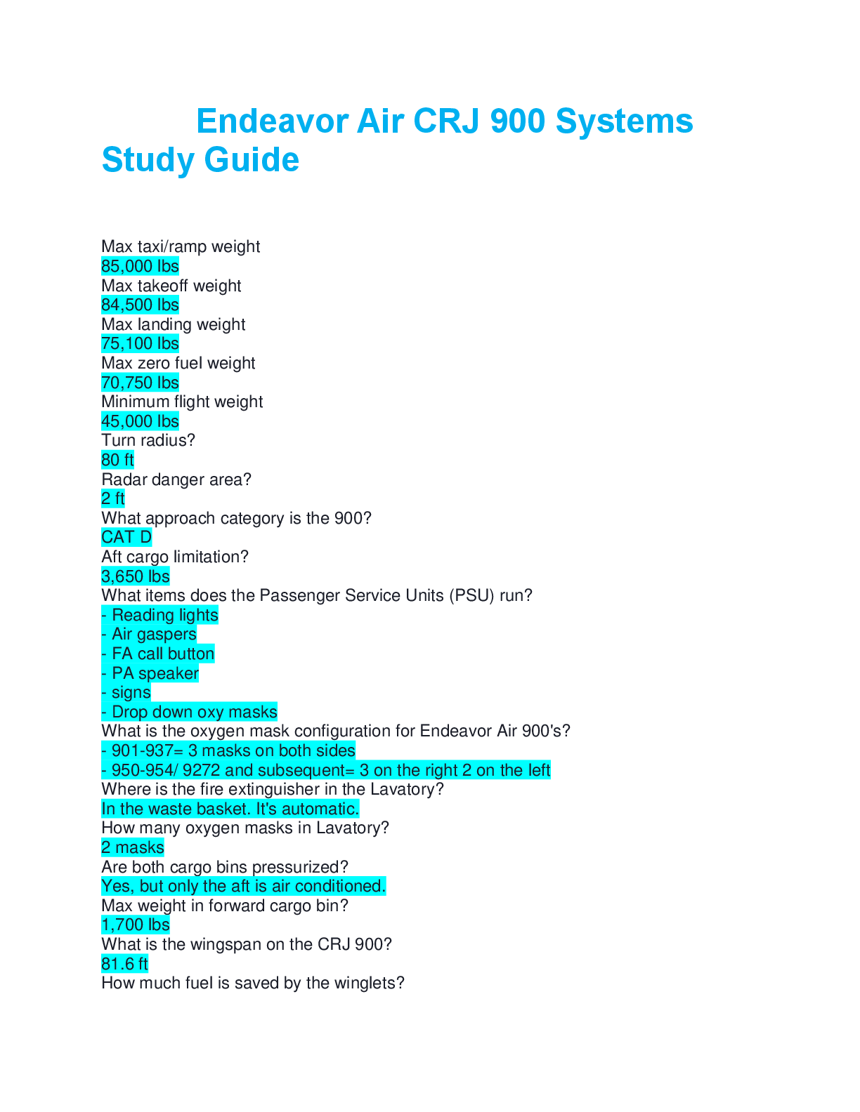 Engineering > EXAM > Endeavor Air CRJ 900 Systems Study Guide questions and answers verified solution 100% 2025/2026 (All)