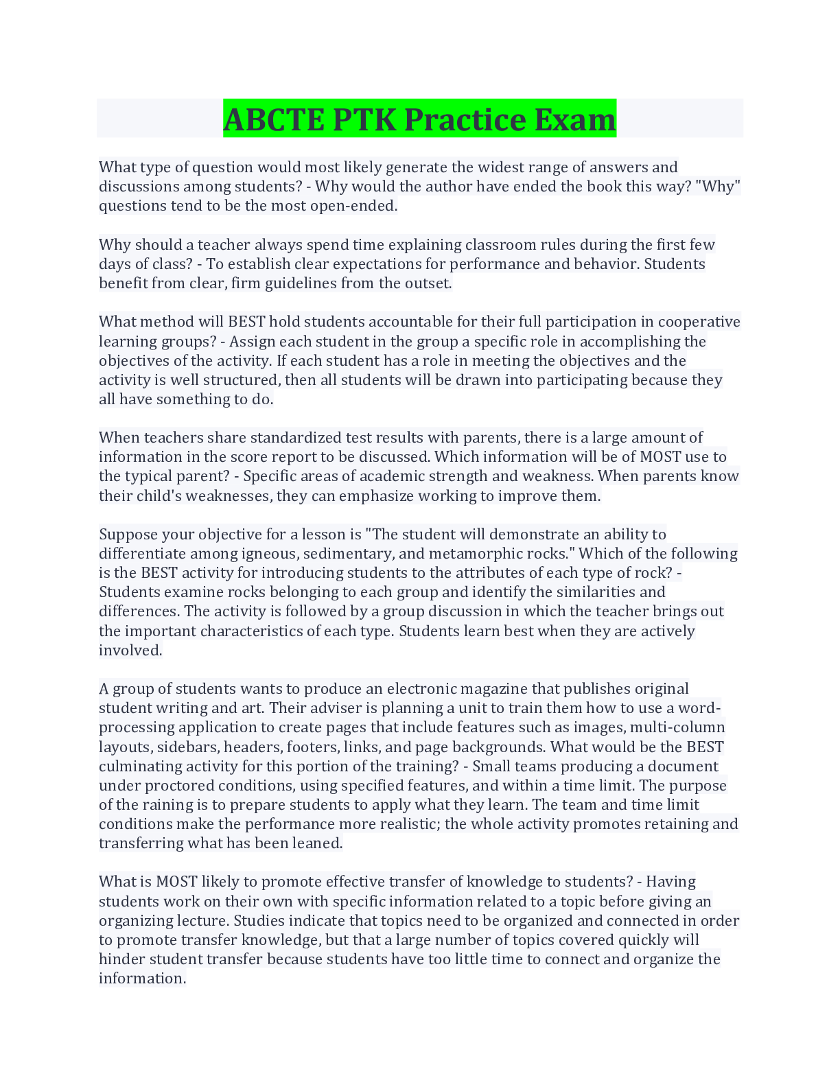 Engineering > EXAM > ABCTE PTK Practice Exam Latest Update Questions And Answers (All)