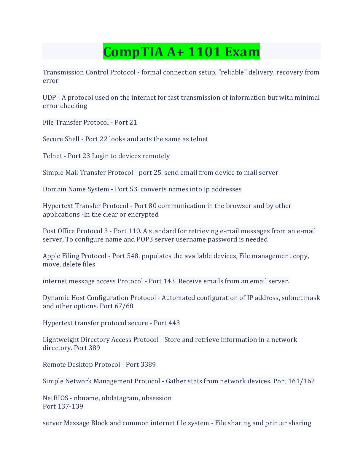 Engineering > EXAM > CompTIA A+ 1101 Exam Test Questions And Answers With Complete Solution (All)