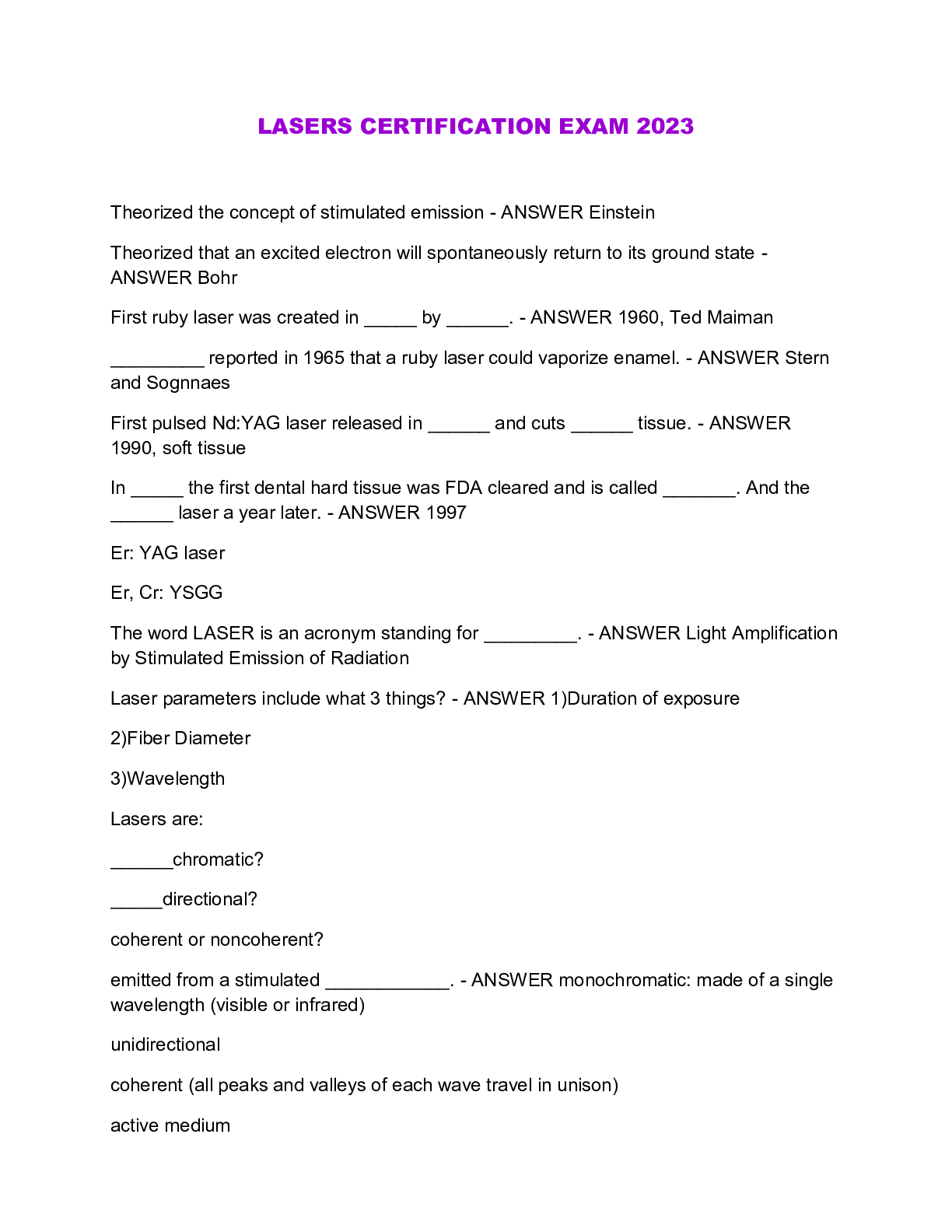 Engineering > QUESTIONS & ANSWERS > LASERS CERTIFICATION EXAM 2023 (All)
