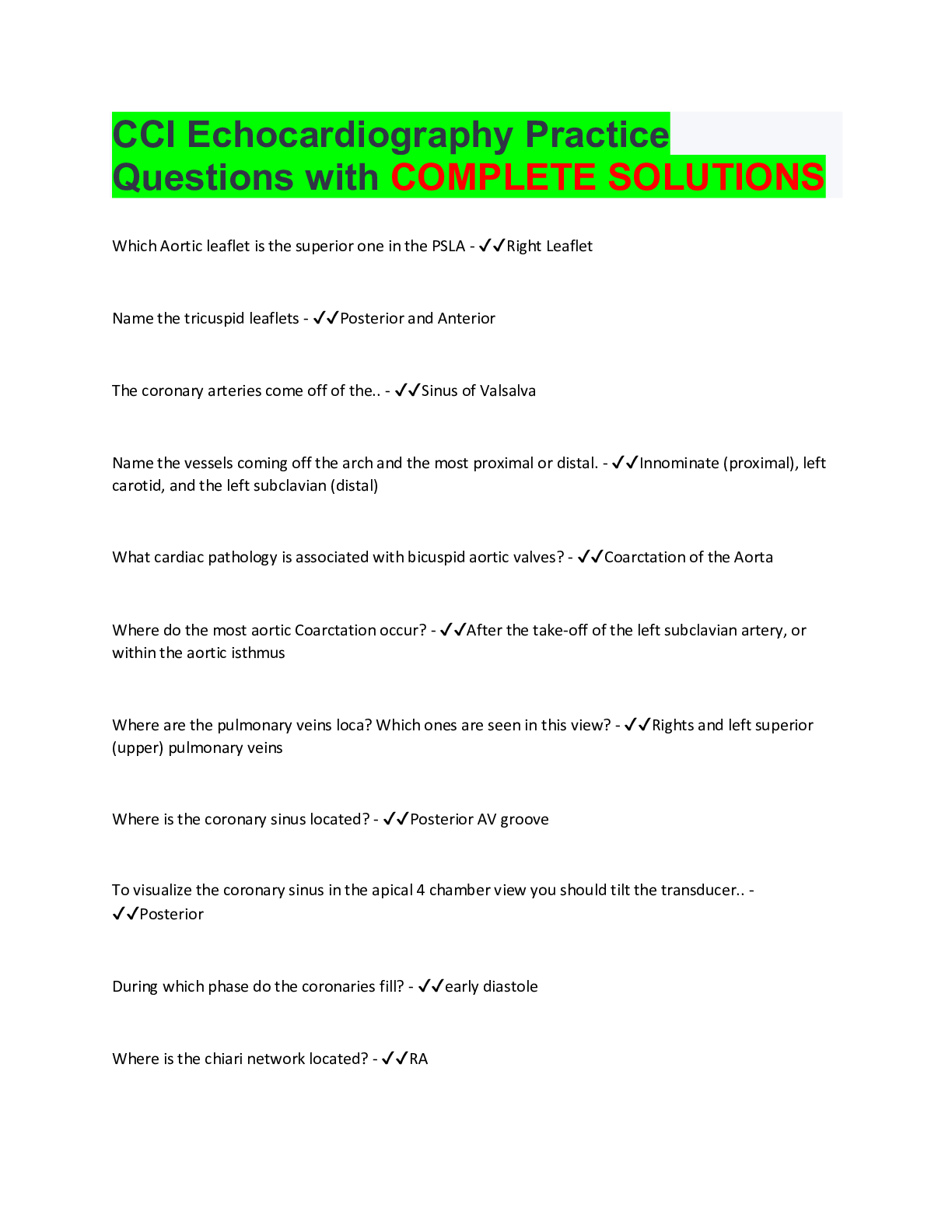 Cardiology > EXAM REVIEW > CCI Registry Review 2022 (COMPLETE SOULUTION) (All)