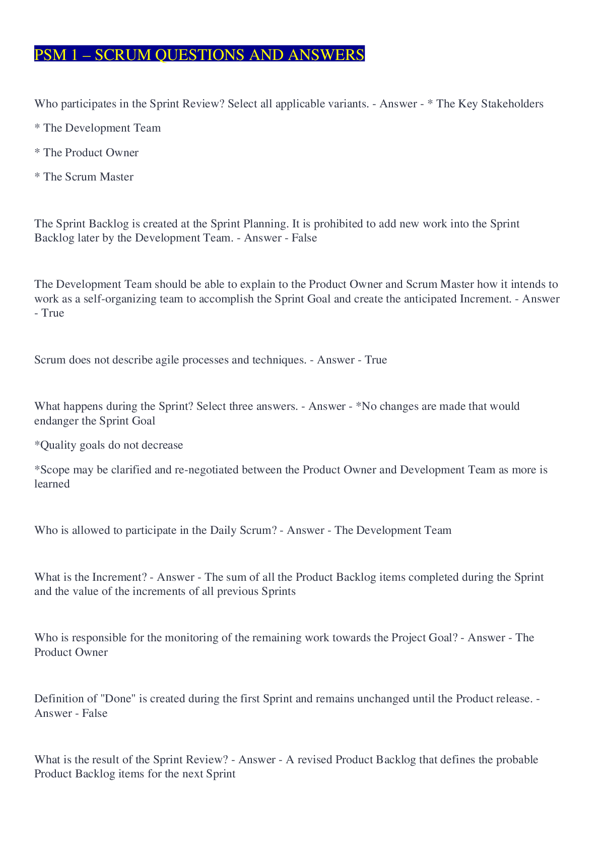 Occupational Therapy > QUESTIONS & ANSWERS > Scrum Master - Cert Exam Real! . (All)