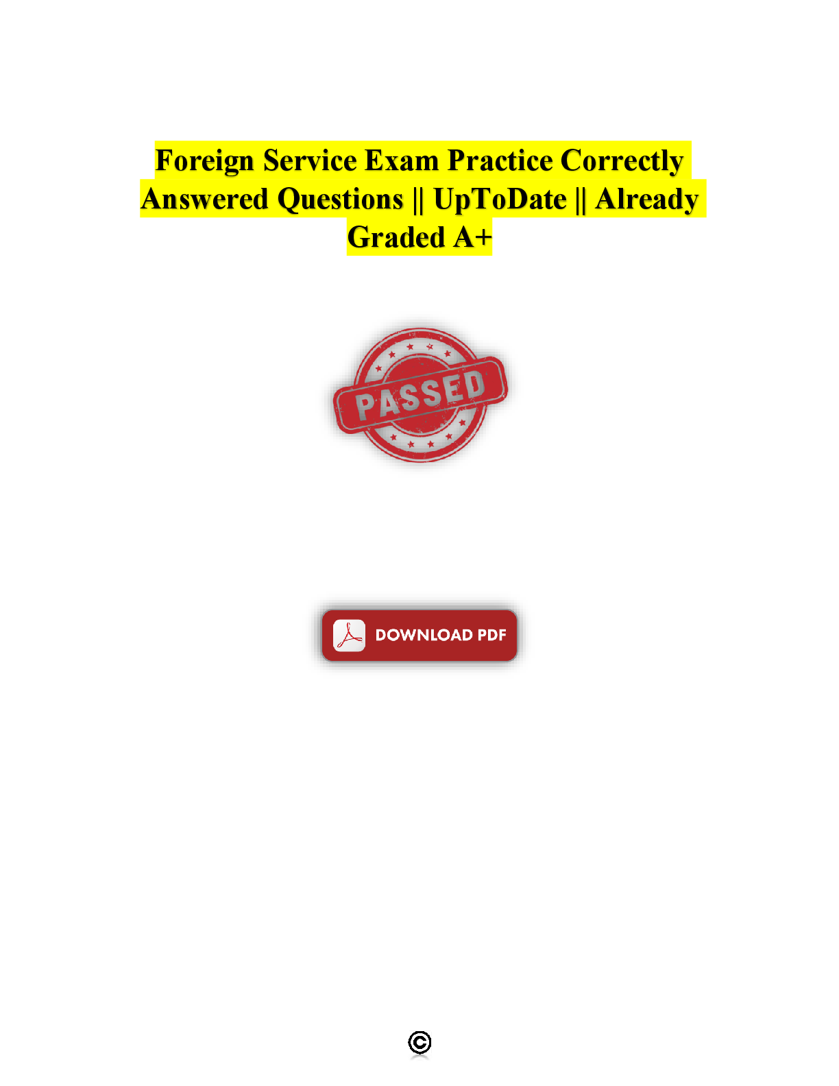 Foreign Languages > EXAM > Foreign Service Exam Practice Correctly Answered Questions || UpToDate || Already Graded A+ 2025 (All)