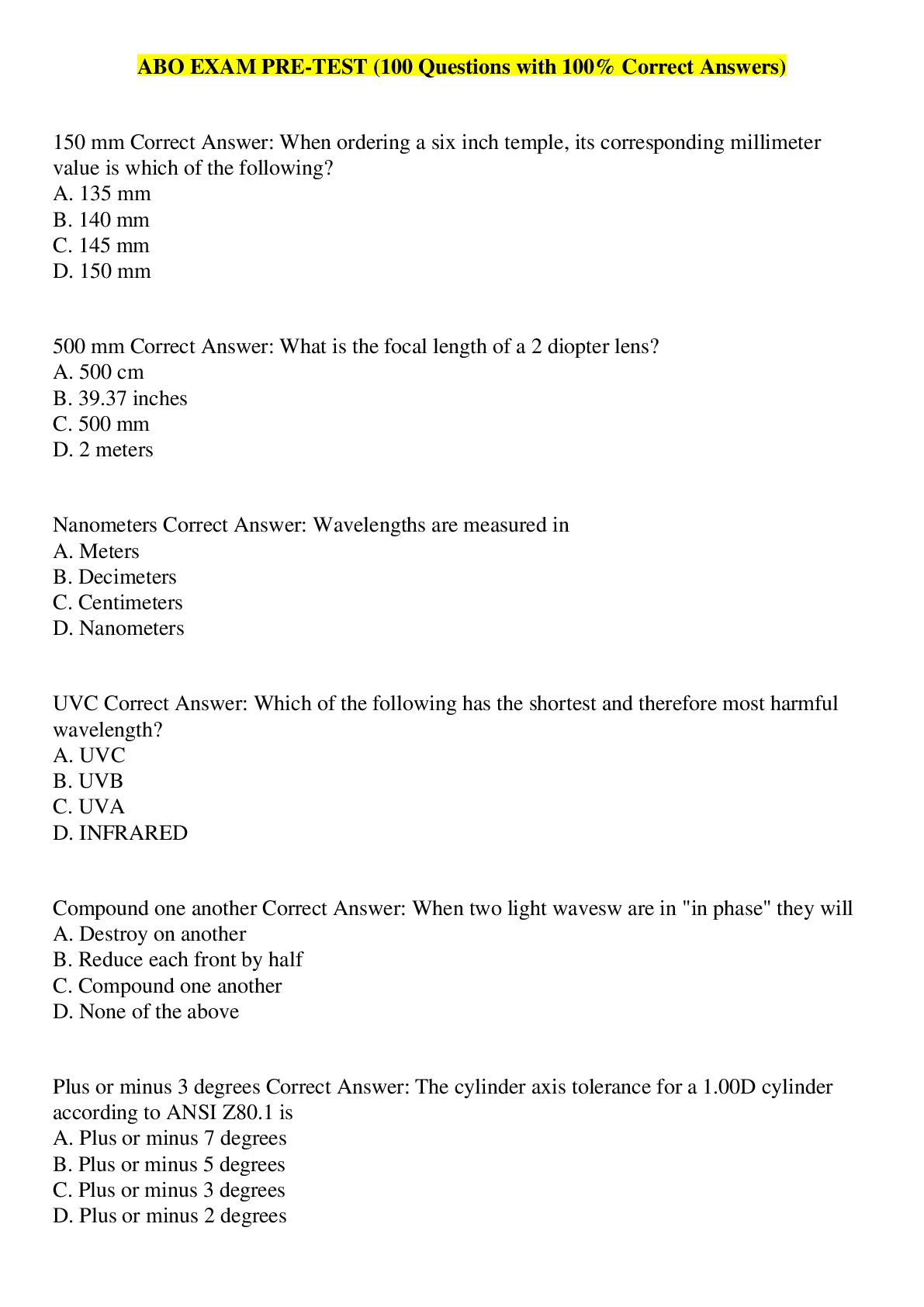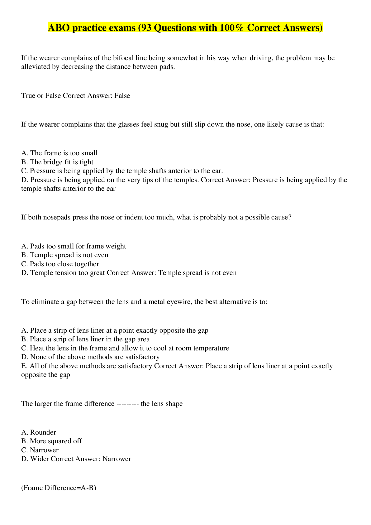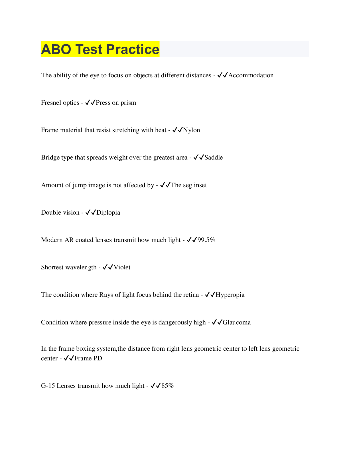 Optometry > QUESTIONS & ANSWERS > ABO practice exams (All)