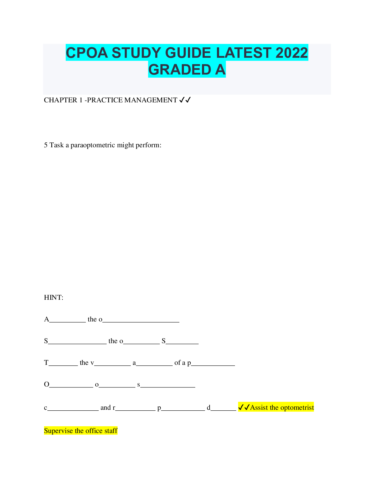 Optometry > QUESTIONS & ANSWERS > CPOA STUDY GUIDE LATEST 2022 GRADED A (All)