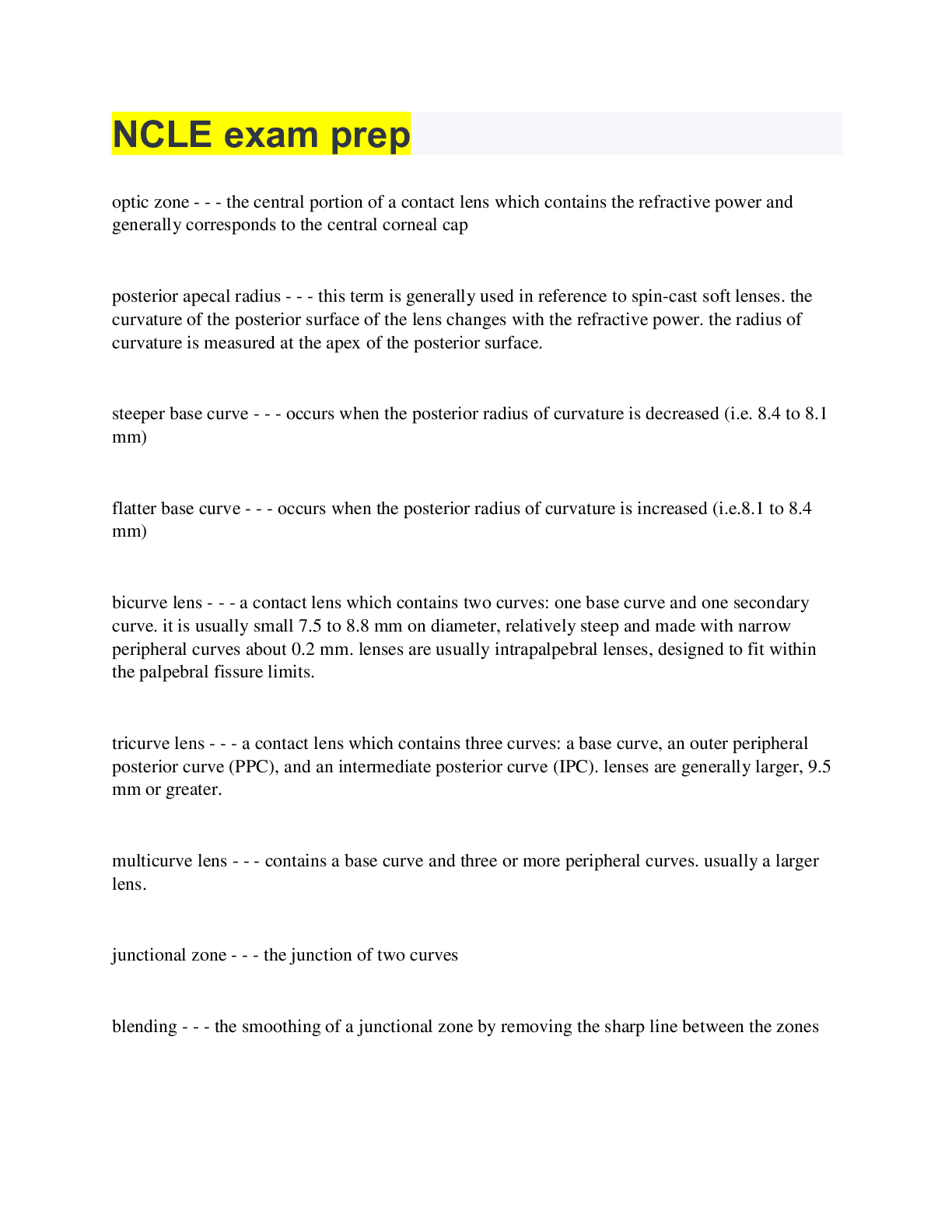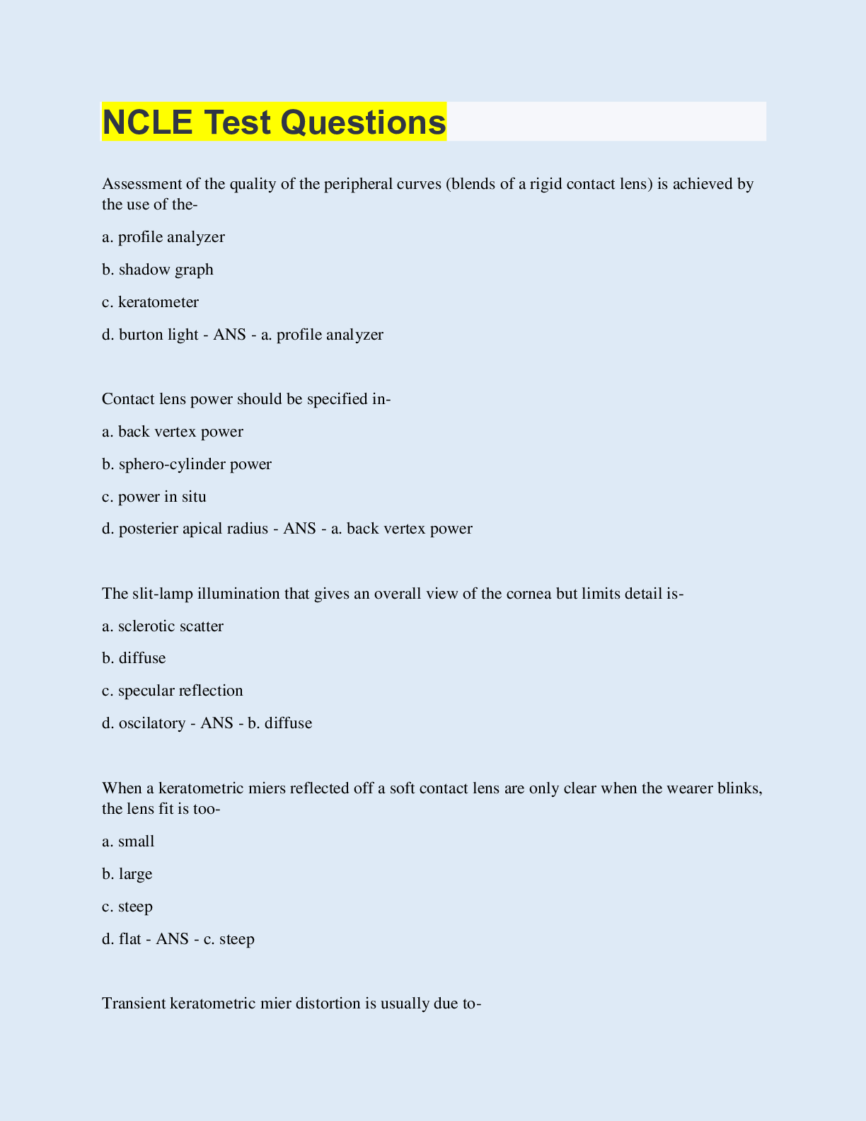 Optometry > QUESTIONS & ANSWERS > NCLE exam prep Questions and Answers with Complete Solutions (All)