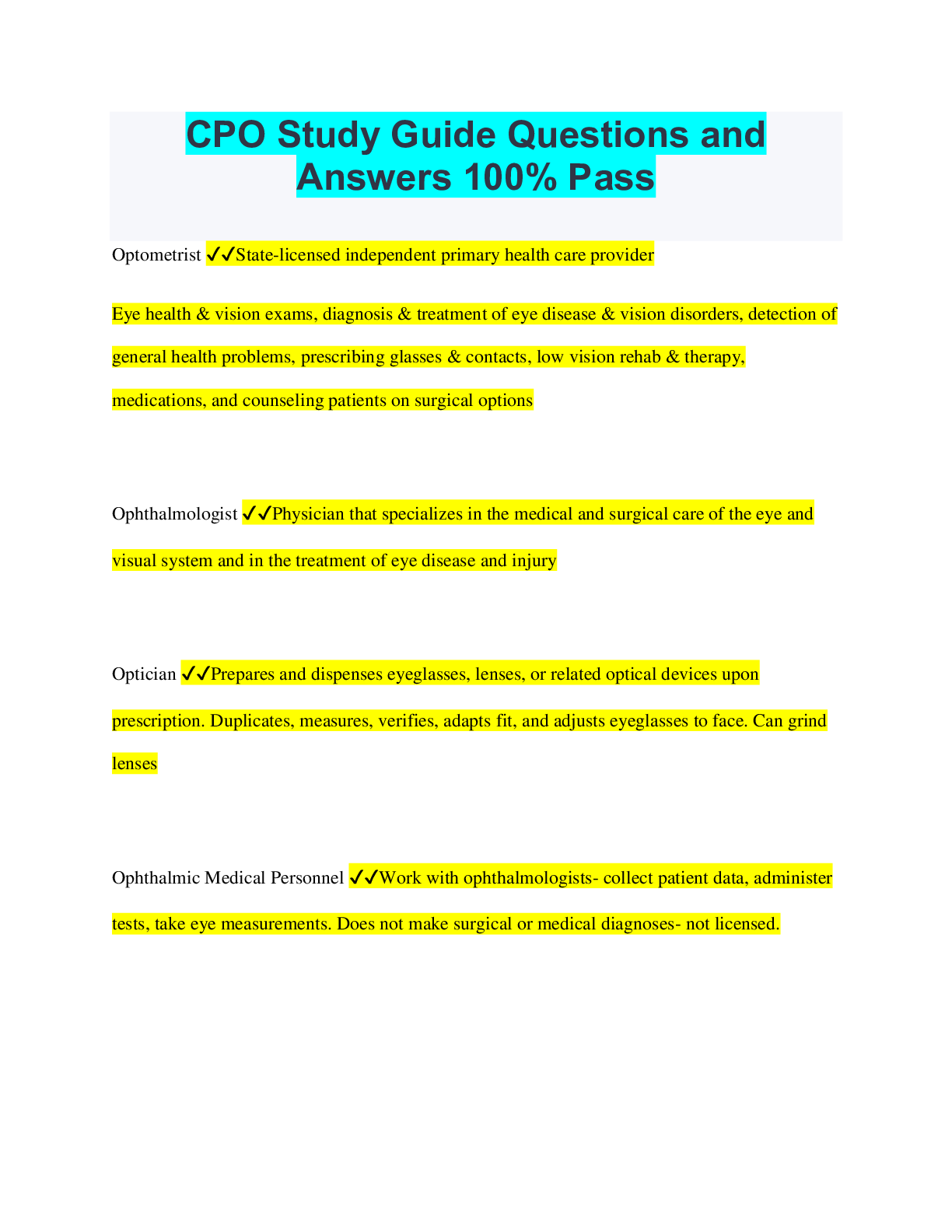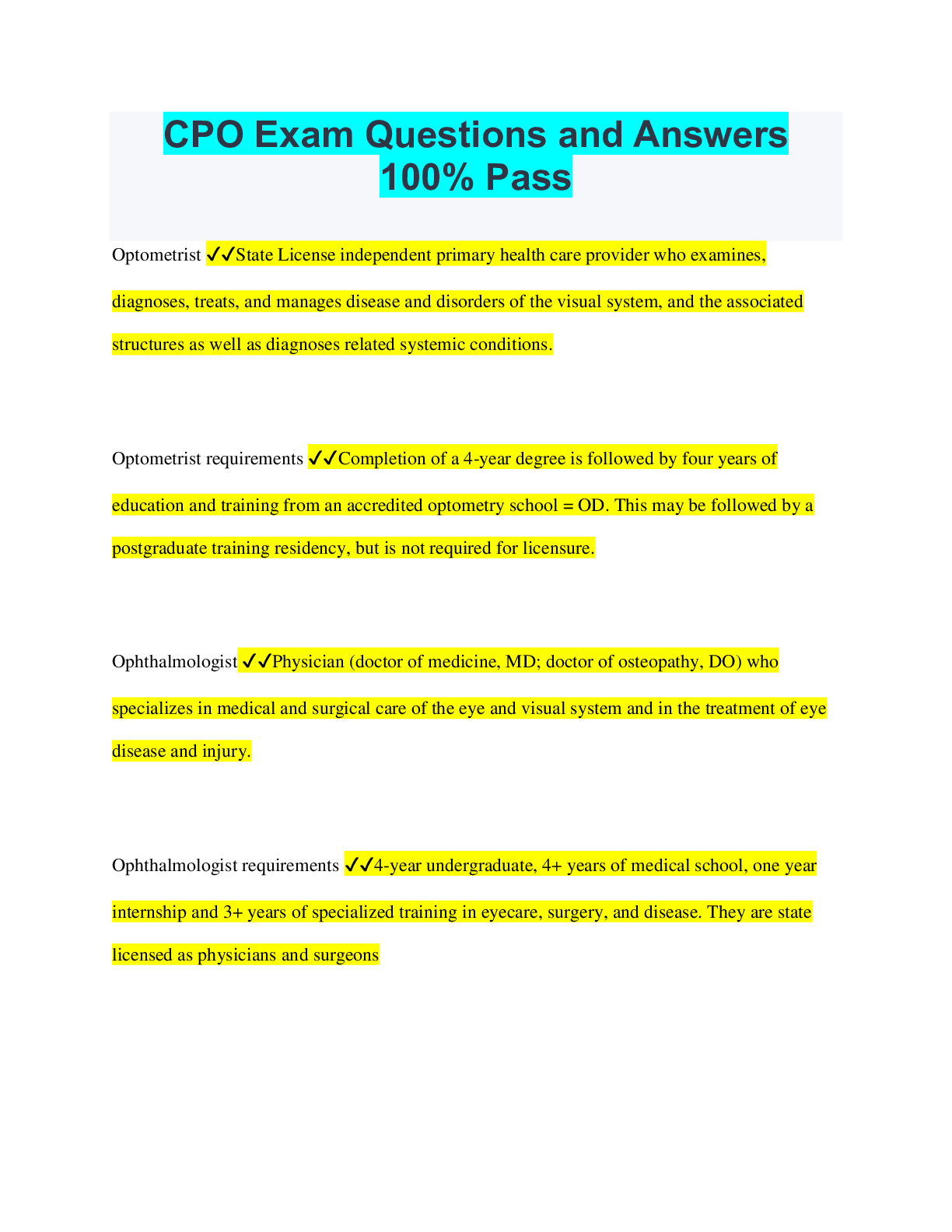 Optometry > QUESTIONS & ANSWERS > CPO Study Guide Questions and Answers 100% Pass (All)