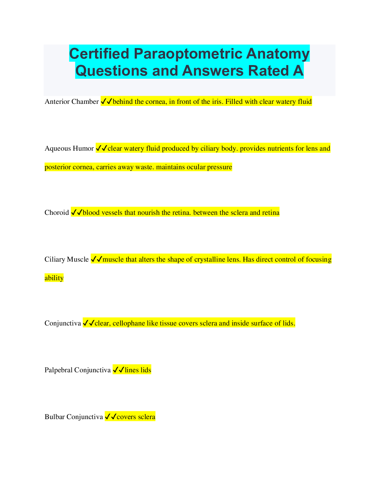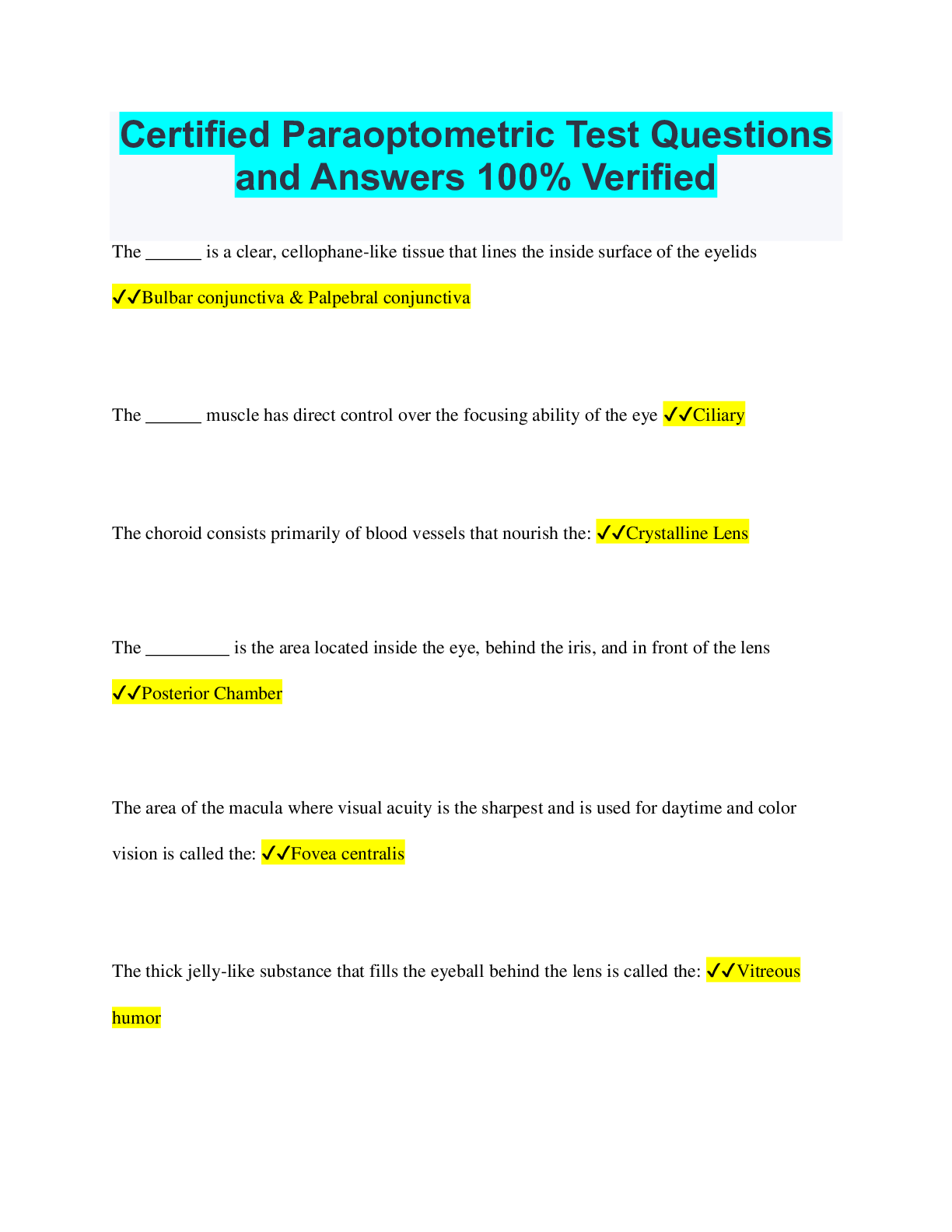 Optometry > QUESTIONS & ANSWERS > Certified Paraoptometric Anatomy Questions and Answers Rated A (All)
