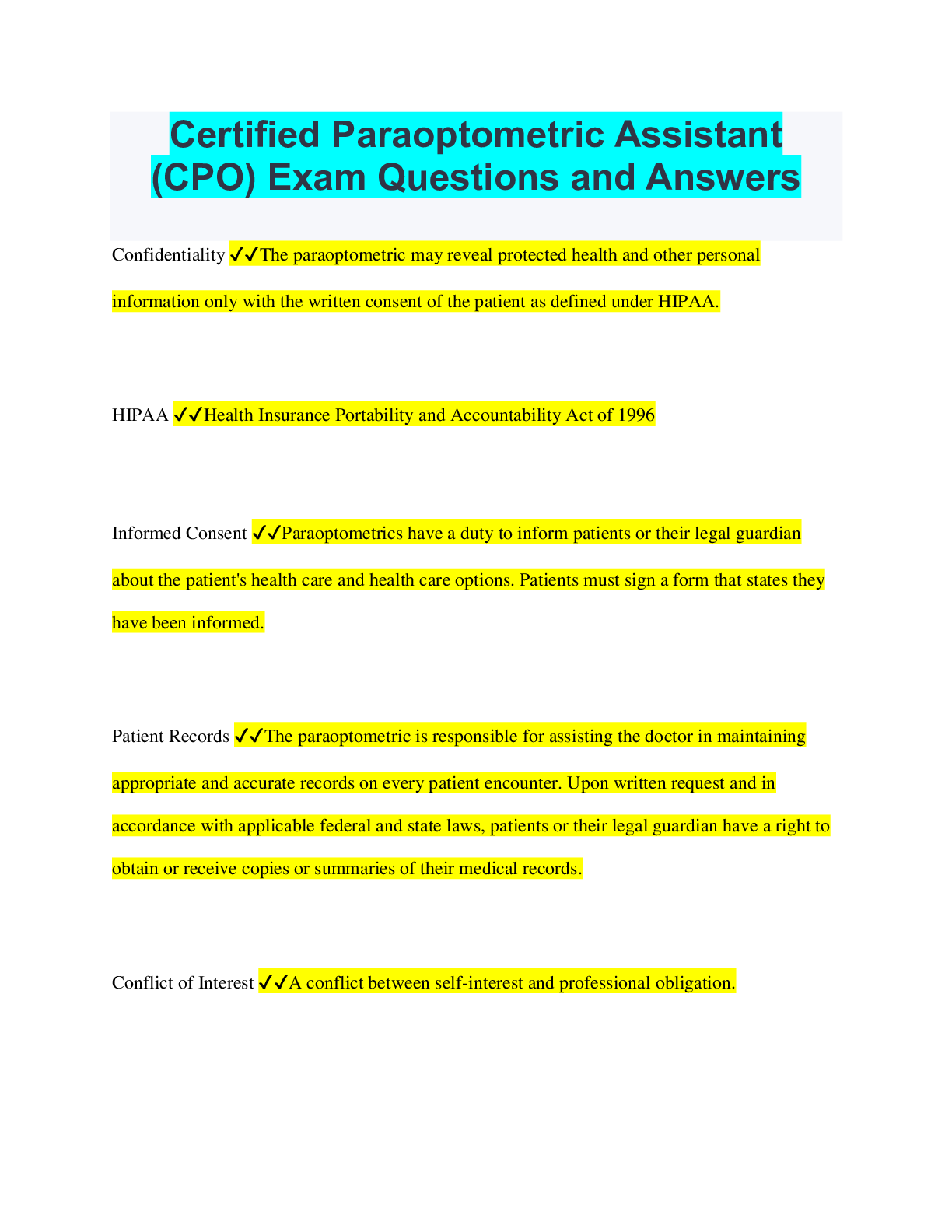 Optometry > QUESTIONS & ANSWERS > Certified Paraoptometric Questions and Answers Already Passed (All)
