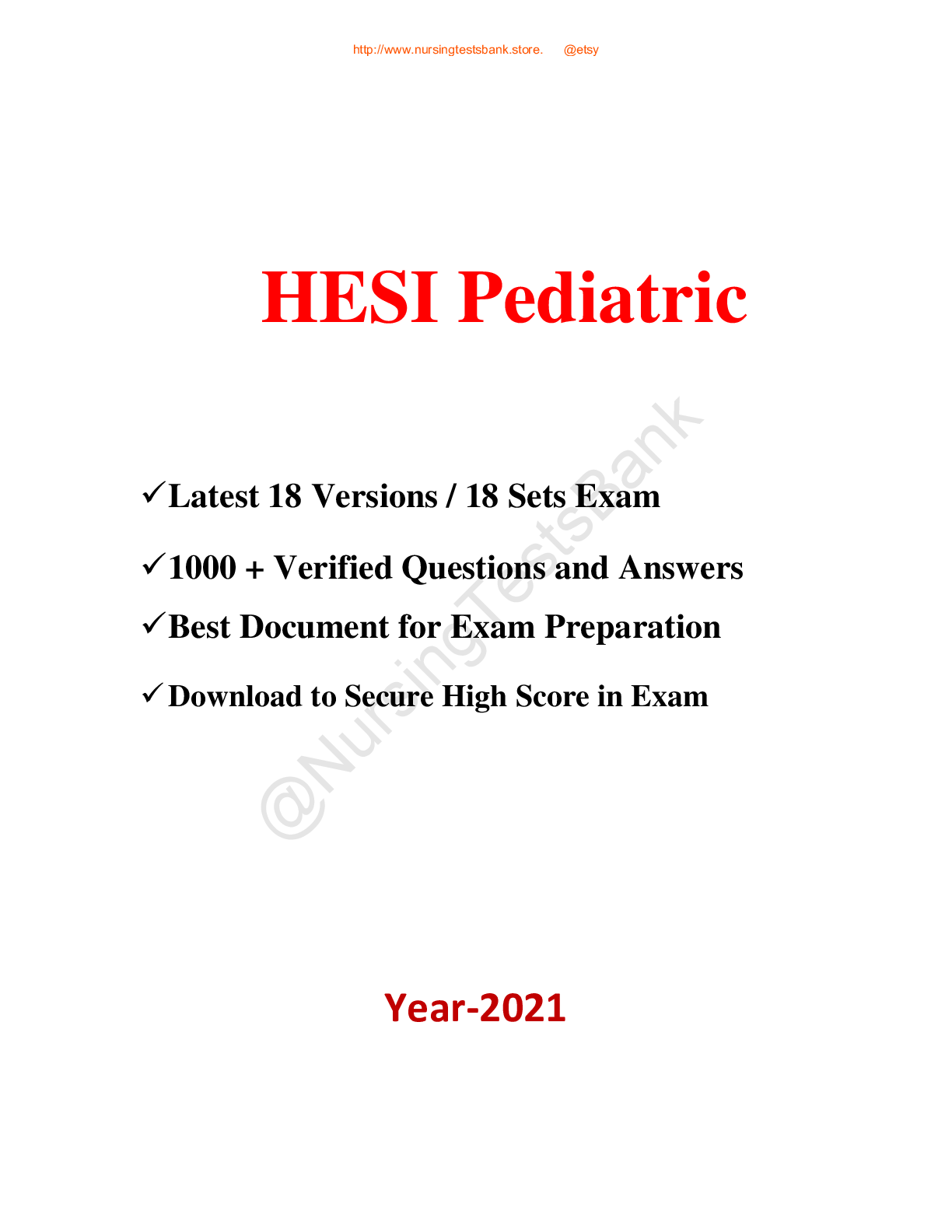 Paediatrics > EXAM > HESI Pediatric Latest 18 Versions /18 Sets Exam 1000 + Verified Questions and Answers (All)