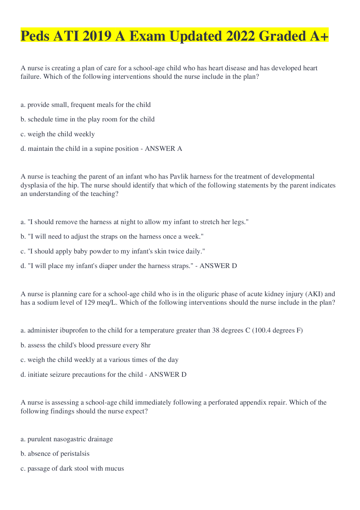Paediatrics > QUESTIONS & ANSWERS > Pediatric ATI Practice Exam 3 (final) Latest 2022 Already Graded A (All)