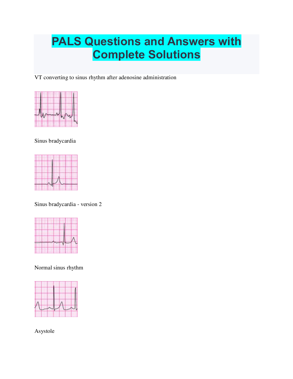 Paediatrics > QUESTIONS & ANSWERS > PALS Questions and Answers with Complete Solutions (All)