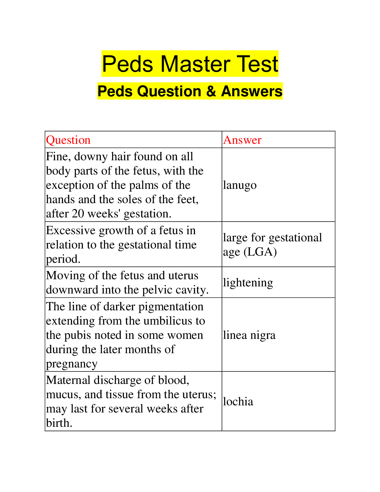 Paediatrics > QUESTIONS & ANSWERS > Peds Master Test Peds Question & Answers (All)