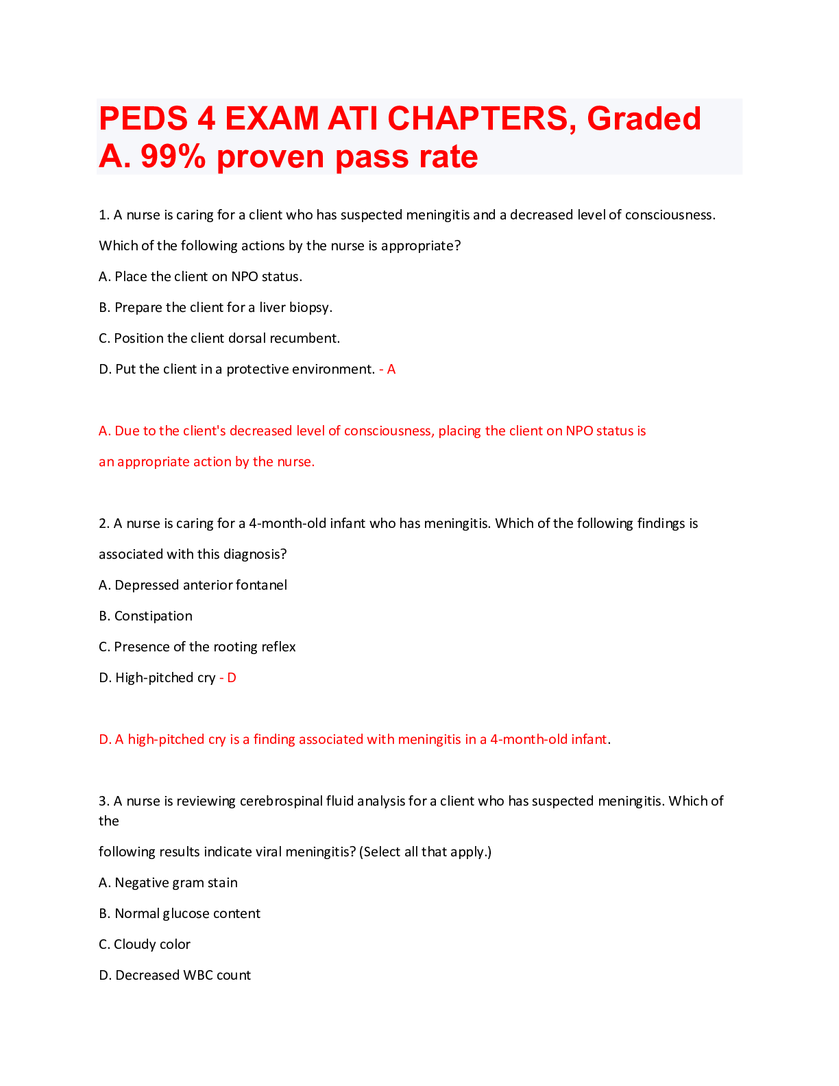 Paediatrics > QUESTIONS & ANSWERS > Pediatric Meningitis questions with complete solutions (All)