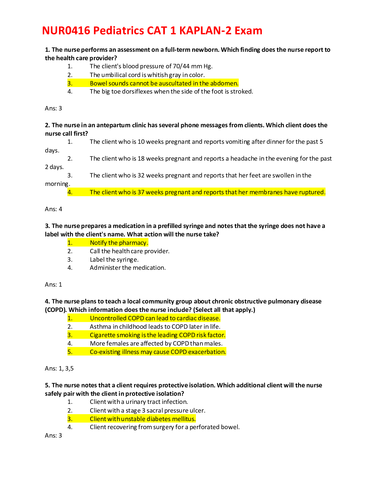 Paediatrics > EXAMs > PEDIATRICS NUR0416 CAT 3KAPLAN-3 Updated (All)