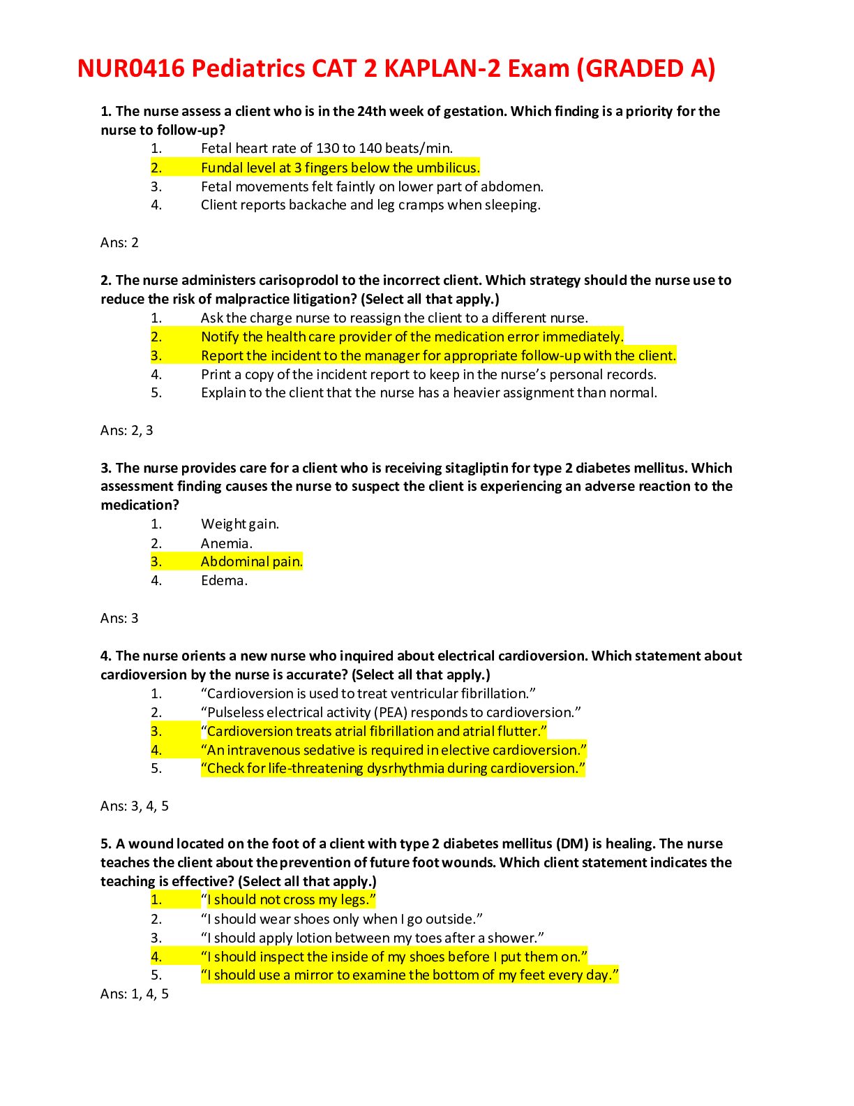 Paediatrics > EXAMs > PEDIATRICS NUR0416 CAT 2KAPLAN-2 Updated (All)