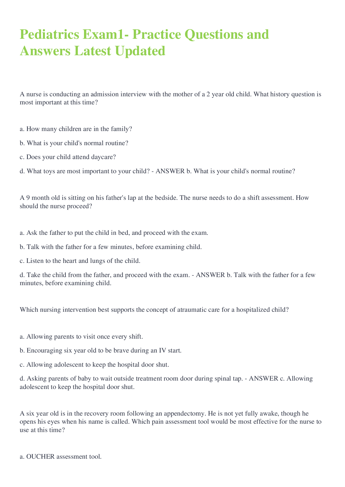 Paediatrics > EXAMs > Pediatrics Exam1- Practice Questions and Answers Latest Updated (All)