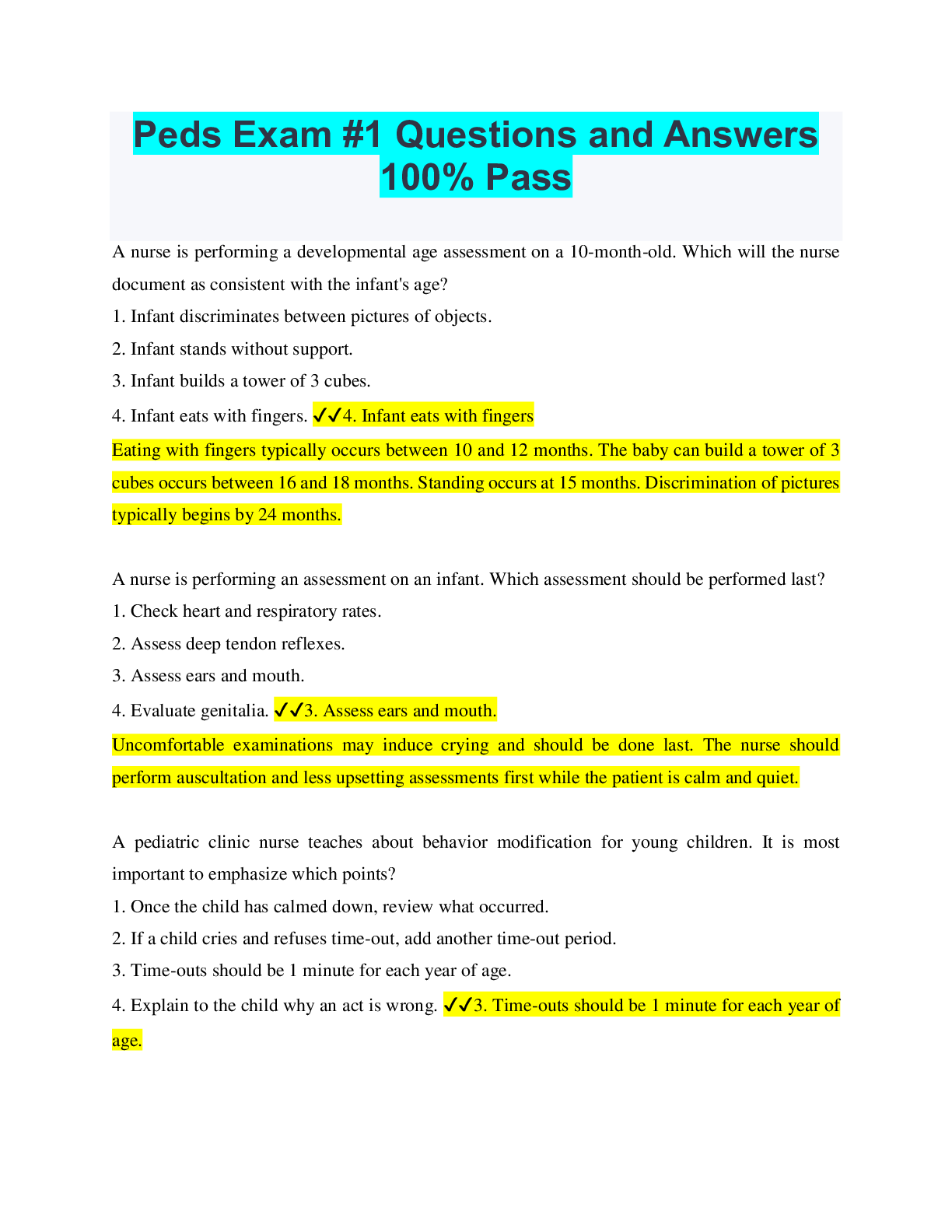 Paediatrics > QUESTIONS & ANSWERS > Peds Exam #1 Questions and Answers 100% Pass (All)