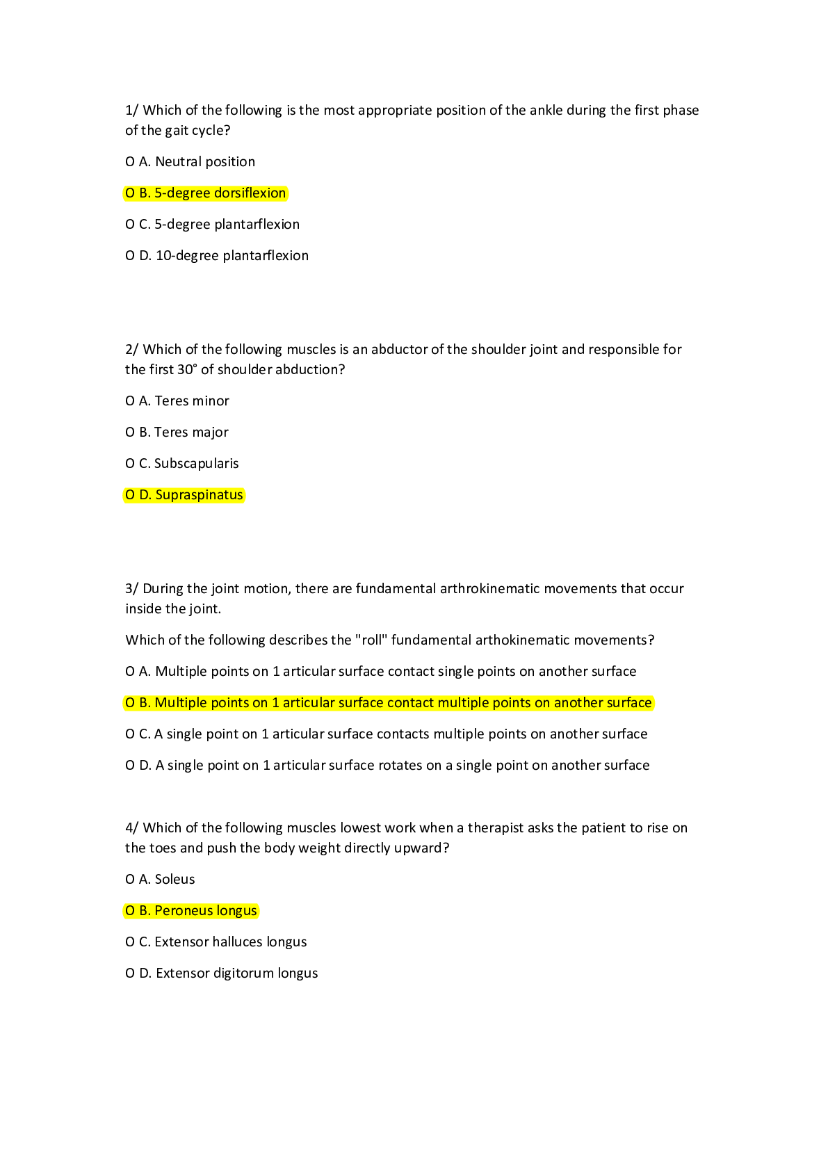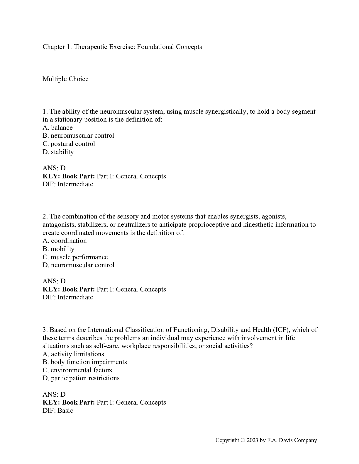 Physiotherapy > TEST BANKS > Therapeutic Exercise, Foundations and Techniques, 8th Edition by Kisner | TEST BANK (All)