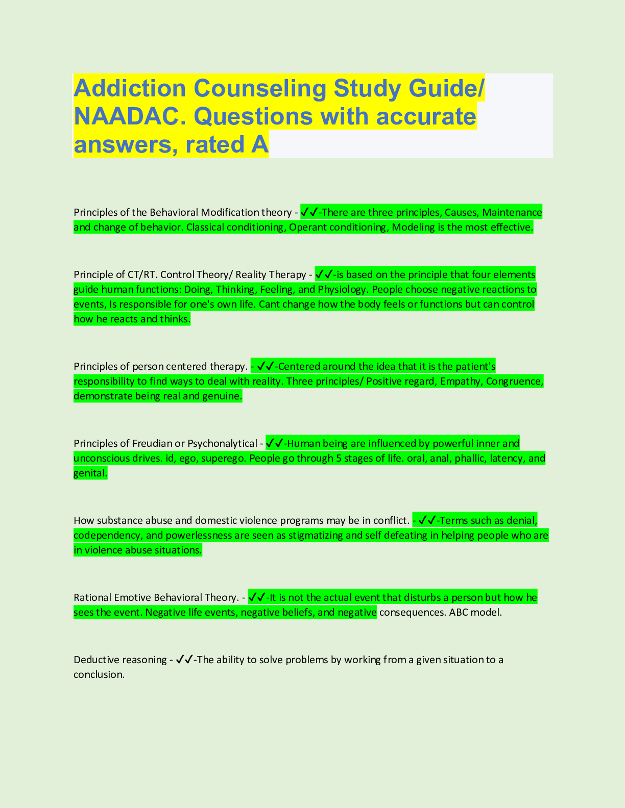Physiotherapy > STUDY GUIDE > Addiction Counseling Study Guide/ NAADAC latest updated and Graded A+ (All)