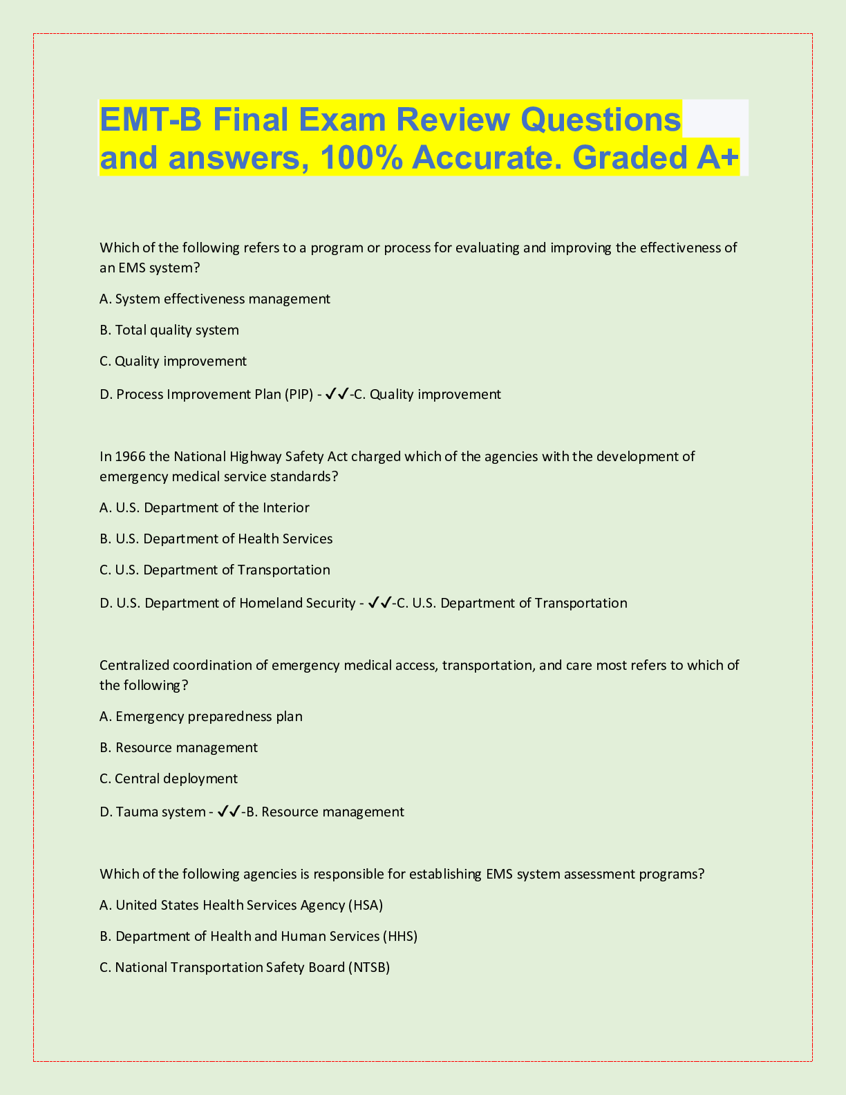 Physiotherapy > QUESTIONS & ANSWERS > EMT-B Basic Final Exam Review 2023 (All)