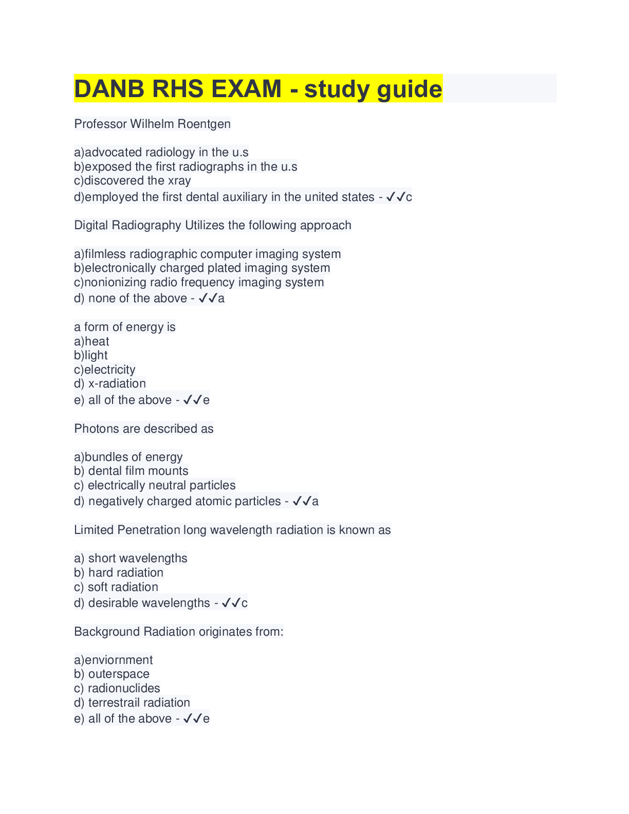 Radiology > QUESTIONS & ANSWERS > DANB RHS EXAM - study guide (All)