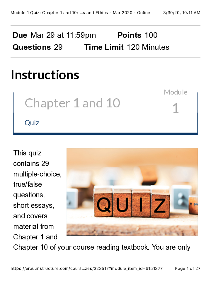 General Questions > EXAM > Module 1 Quiz: Chapter 1 and 10: HUMN 330 Values and Ethics/ (Score for this quiz: 100 out of 100). (All)