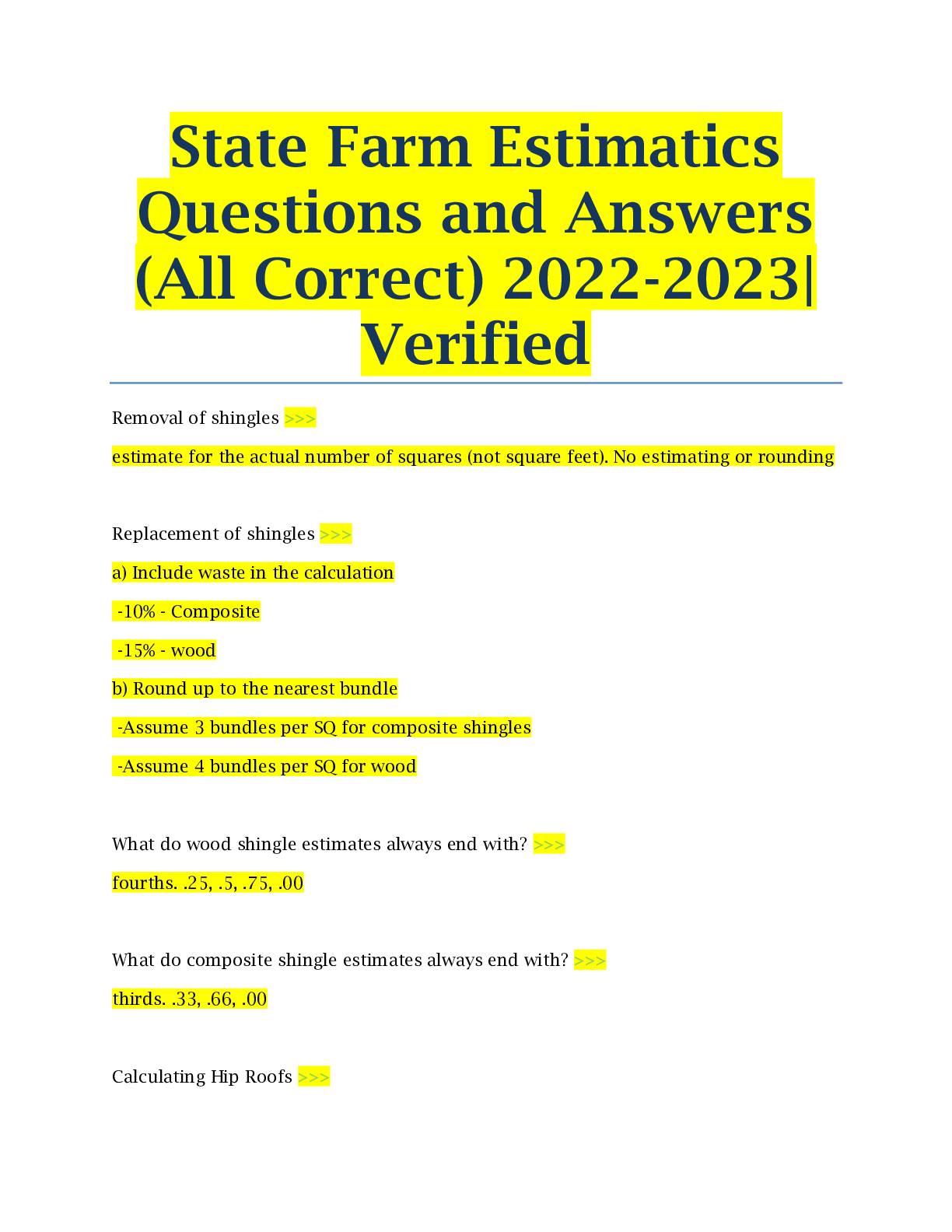 Art and Design > EXAM > State Farm Estimatics Questions and Answers (All Correct) 2022-2023| Verified (All)