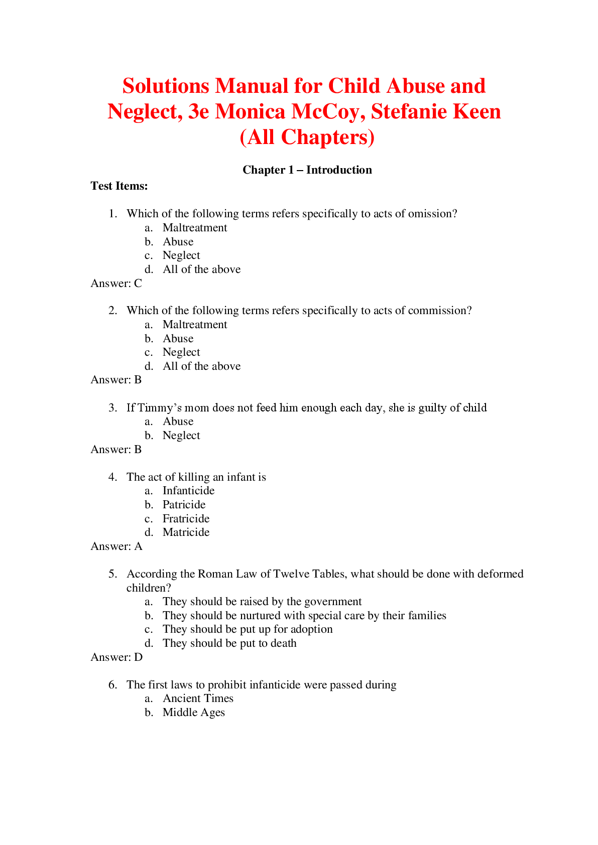 Child Learning and Development > SOLUTIONS MANUAL > Solutions Manual for Child Abuse and Neglect, 3rd Edition by Monica McCoy, Stefanie Keen (All Chapters) A+ (All)